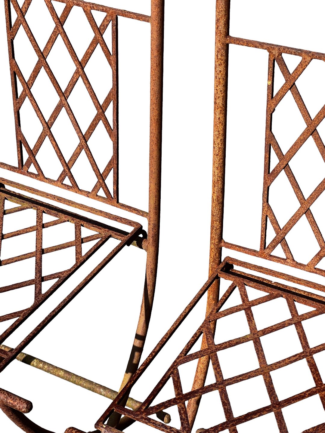 Et sæt af to franske jern stole fra omkring 1950'erne med fin udsmykning.