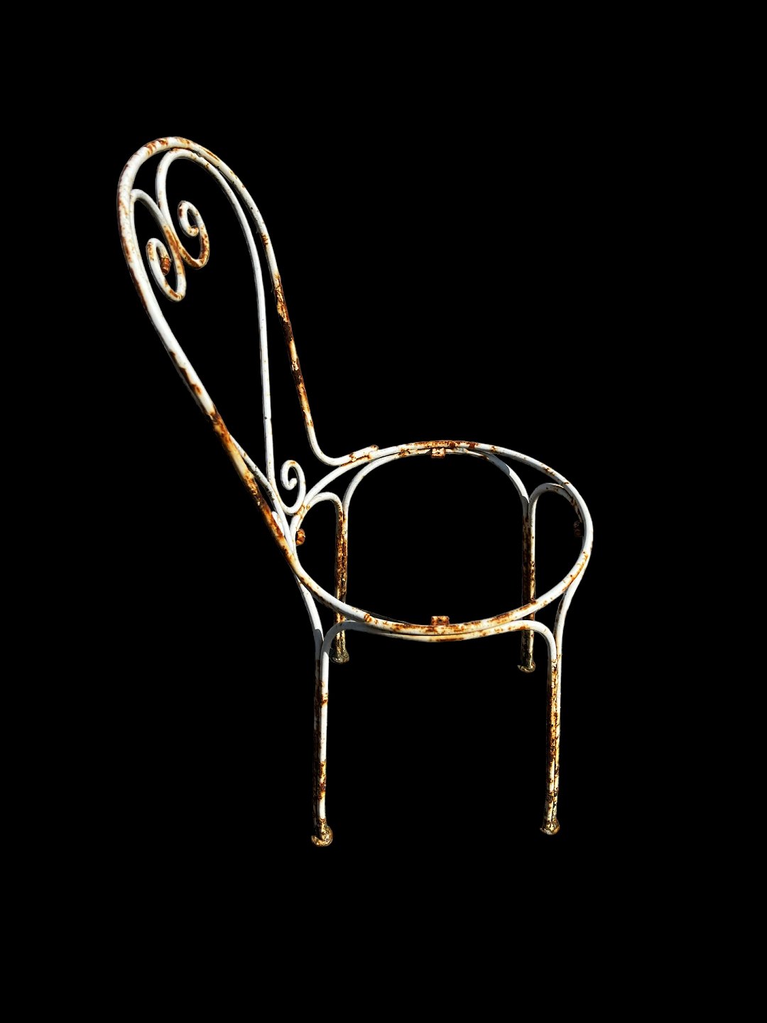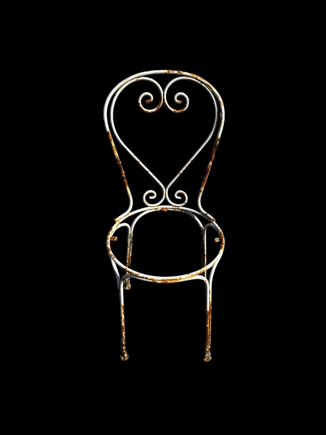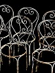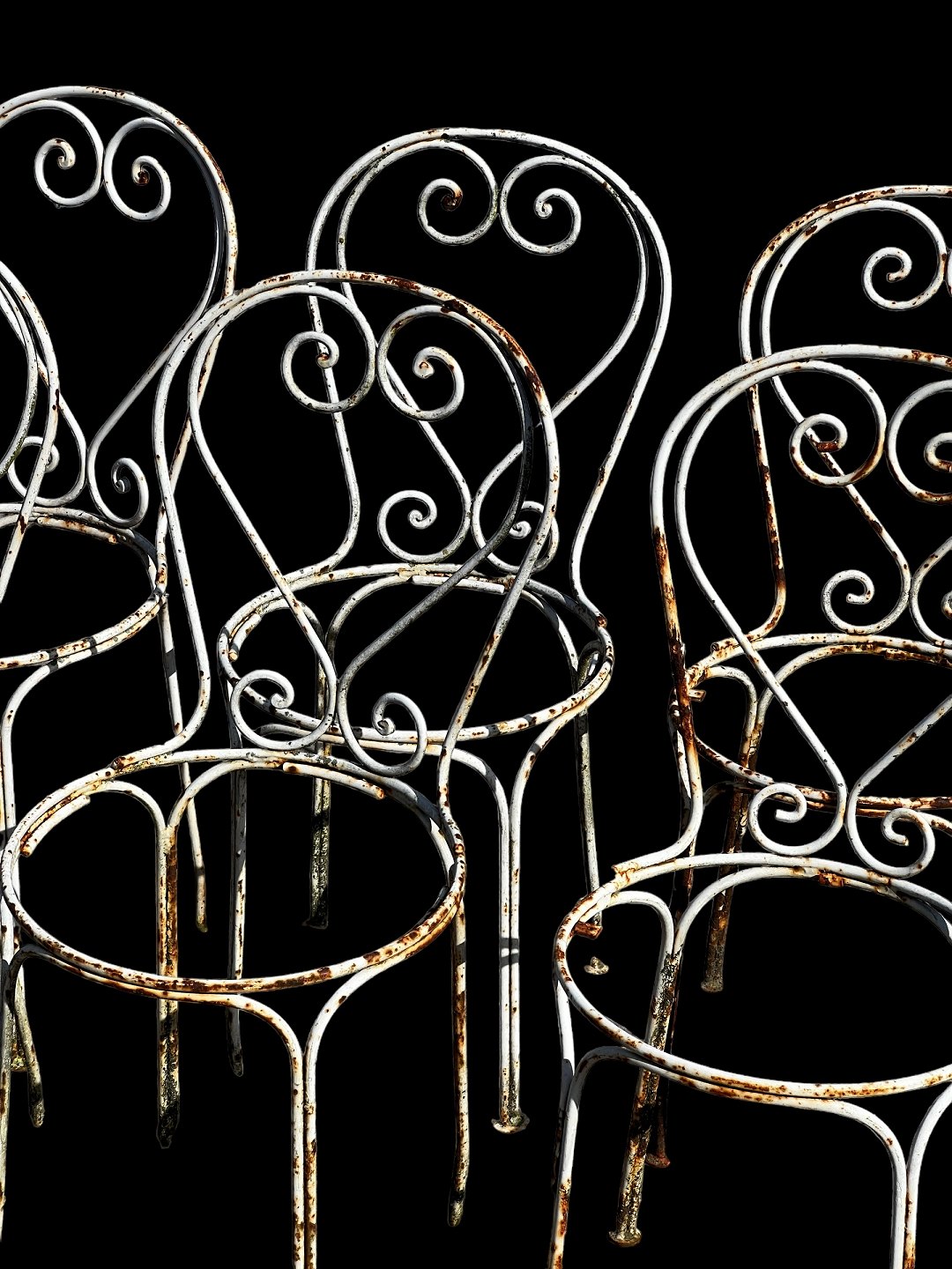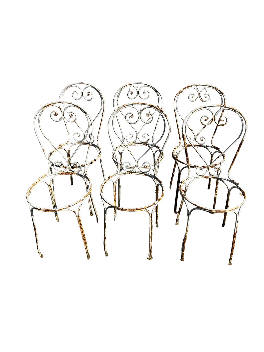 Et sæt af 6 franske have- eller spisestuestole i jern med flot originalt design fra Frankrig i 1950'erne. Hvis interesseret kan der laves sæder som passer til. Kontakt os venligst.