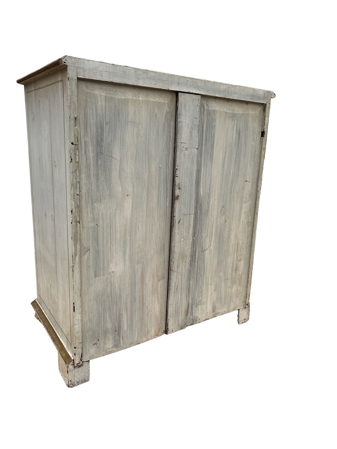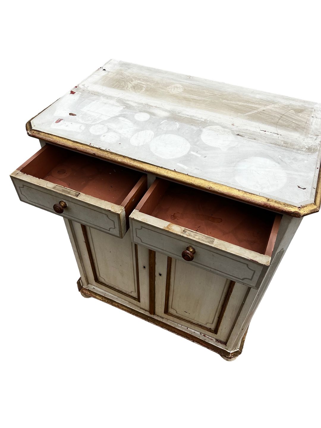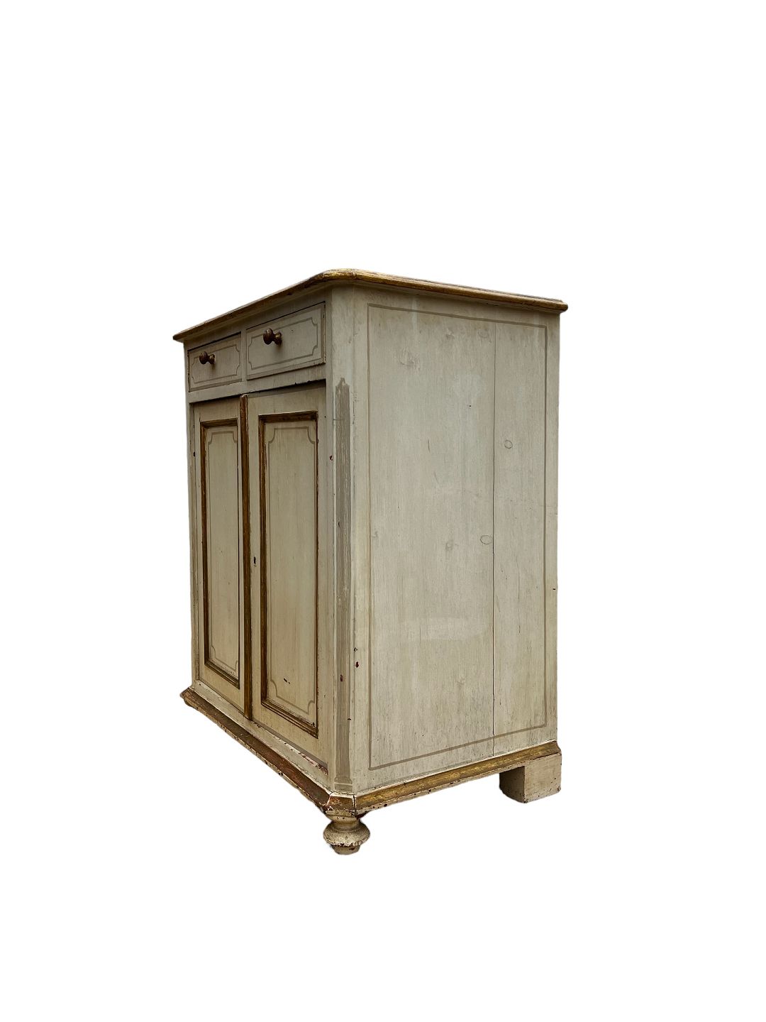 Console cabinet in patinated light shades with small round legs from around the 1860s
