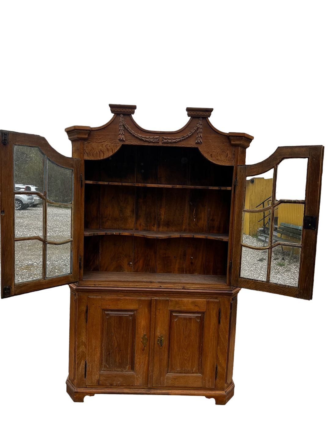 Please contact us for price informationFrisian display cabinet in solid oak with beveled sides from around the 1780s.