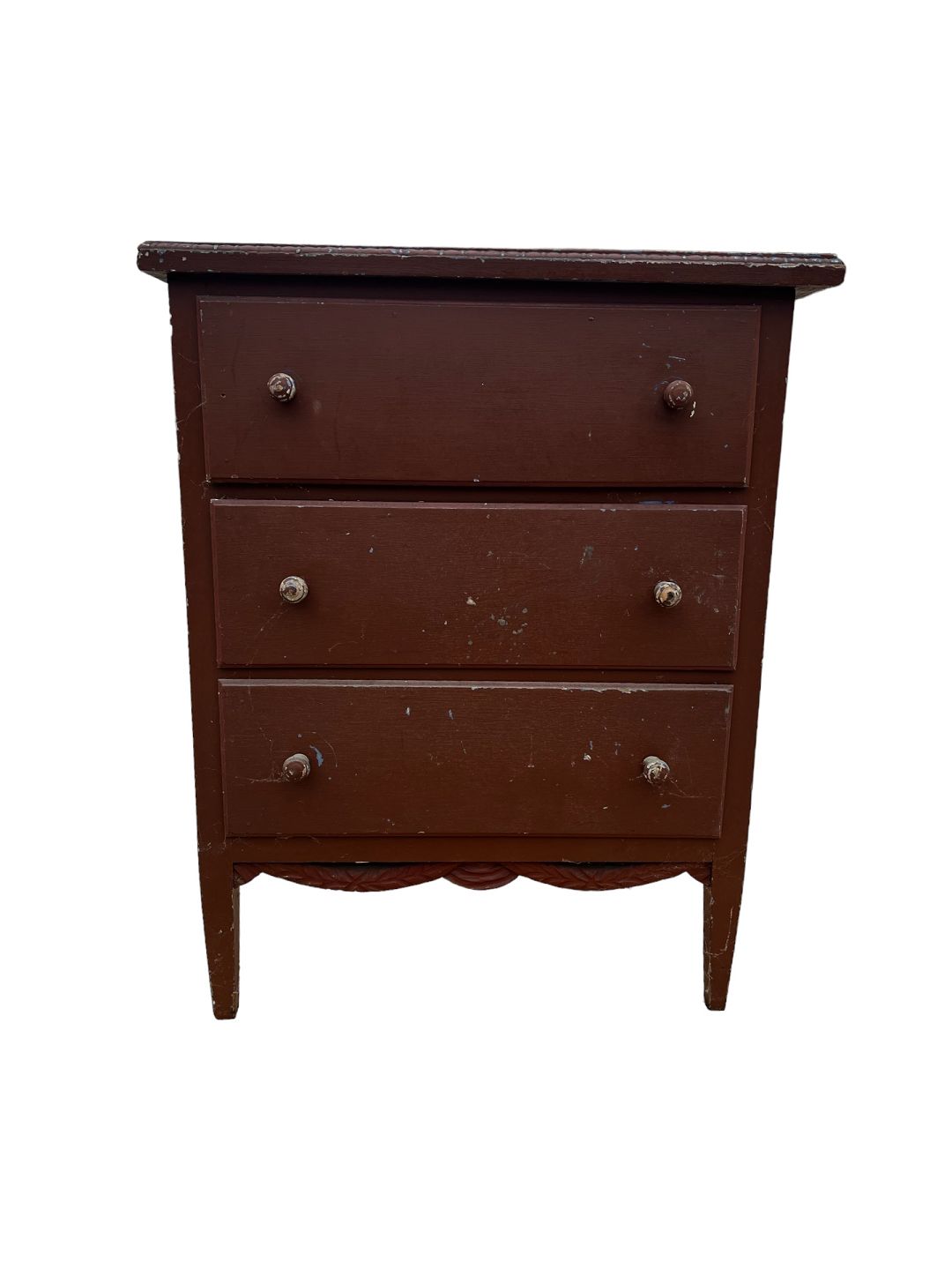 Lille brun malet kommode fra omkring år 1930'erne.