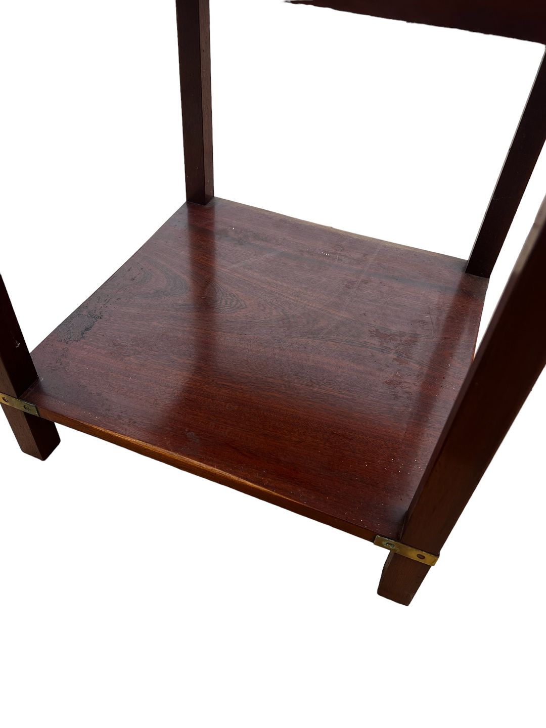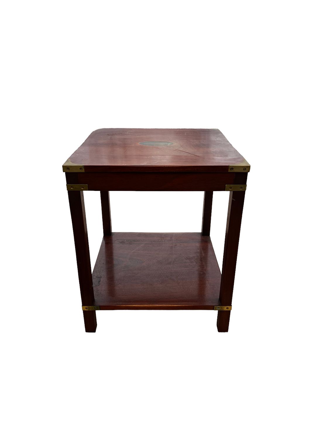SoldAntique mahogany side table with brass on the corners.