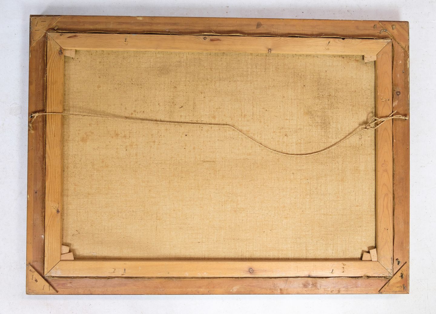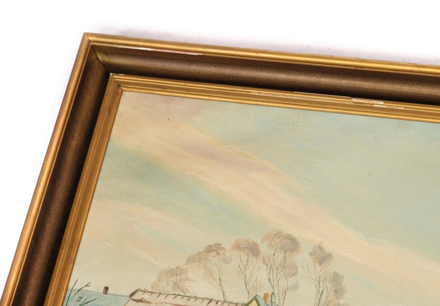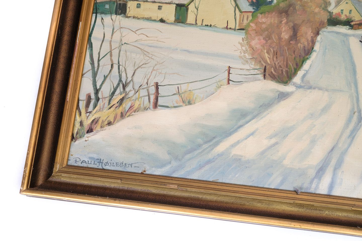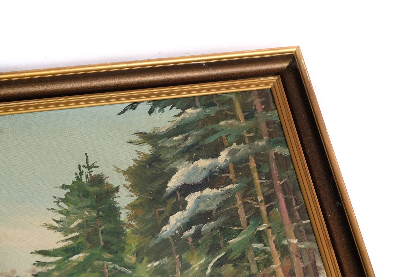 Painting on the canvas with a motif of a snowy landscape from around the 1930s.