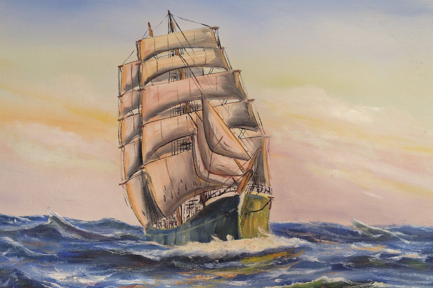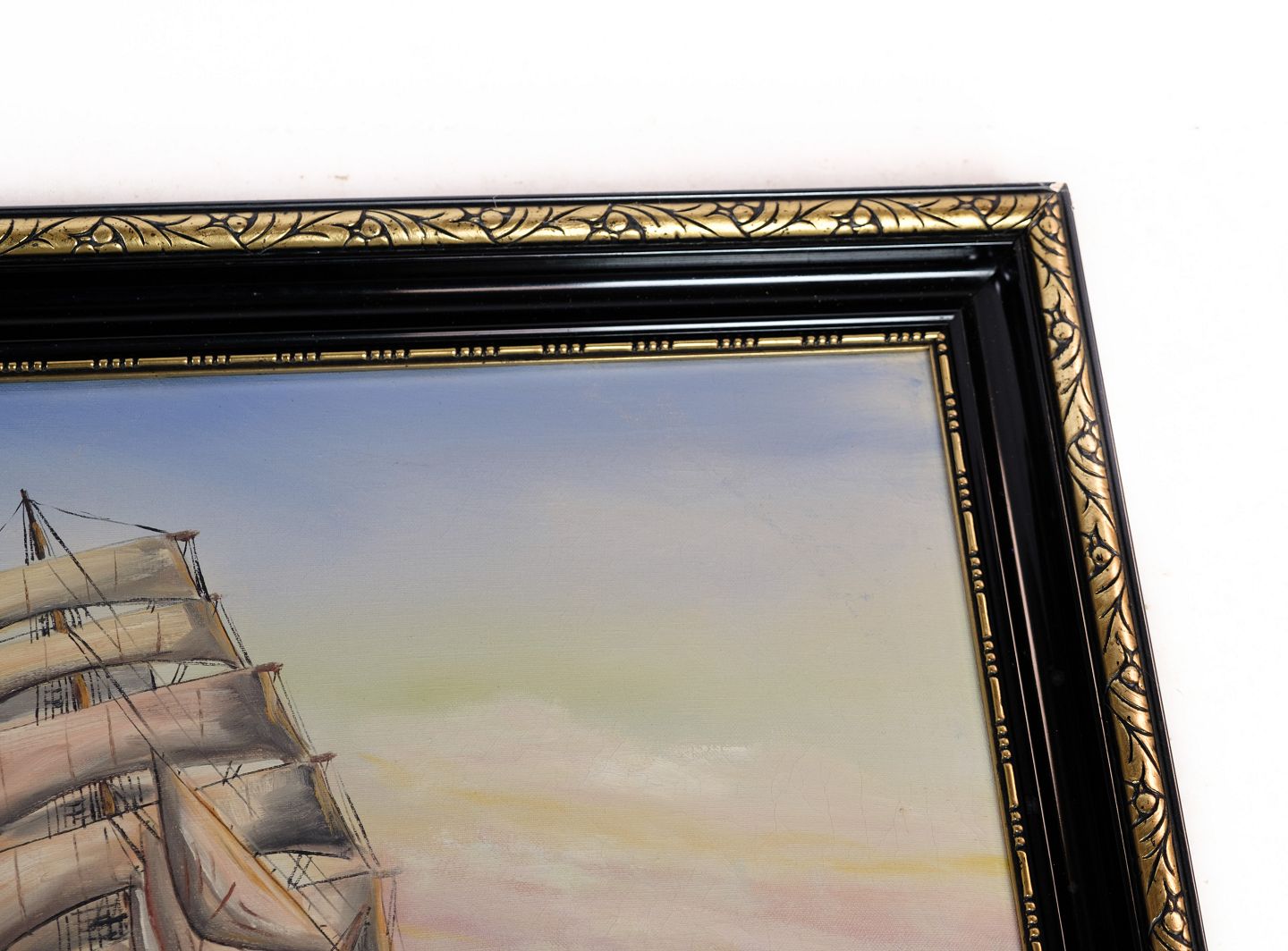 Oil painting with marine motif and with black frame from around 1890. Signed