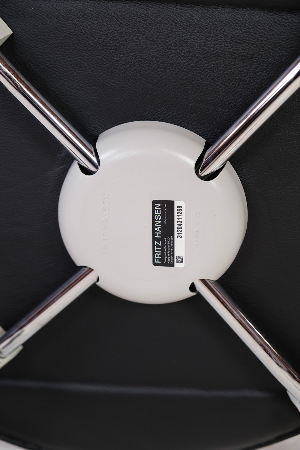 Stolene er fra 2020 med originale labels black grace leather, som er et højkvalitets og slidstærkt materiale. Det sorte læder giver stolene et slankt og sofistikeret look, der komplementerer deres enkle og elegante design.