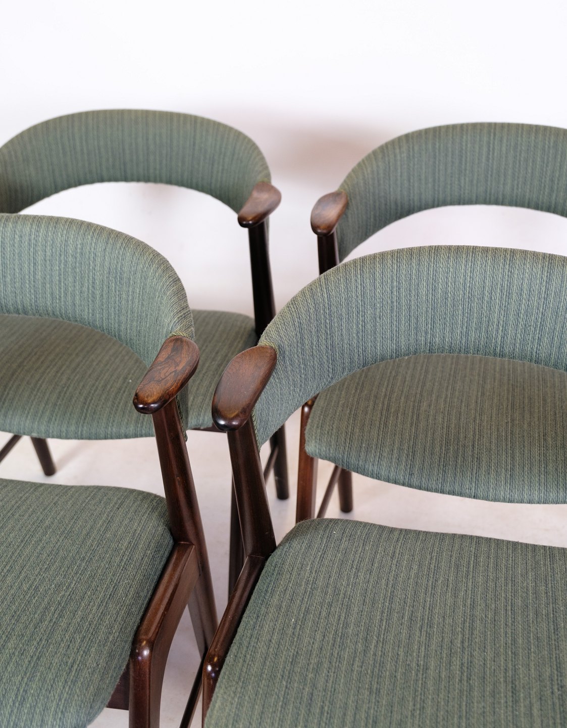 Set of 4 armchairs of Danish design in rosewood manufactured by Korup Stolefabrik in blue fabric from around the 1960s.