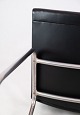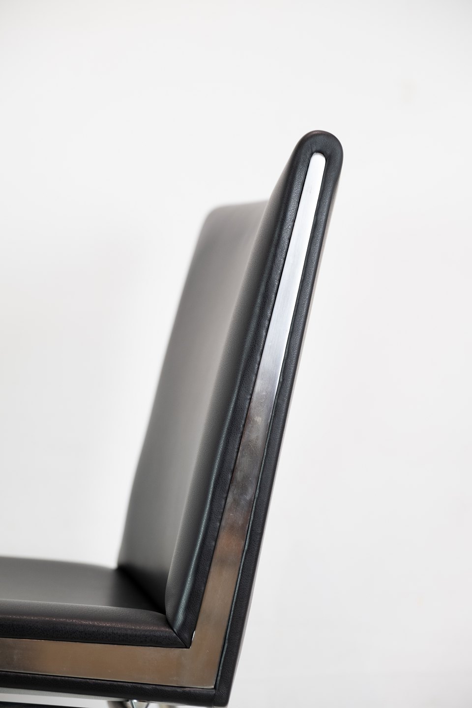 Loungestolen har en kombineret ryglæn og sæde, som kan polstres enten i stof eller læder, hvilket giver mulighed for forskellige designpræferencer og indretningsstile.
