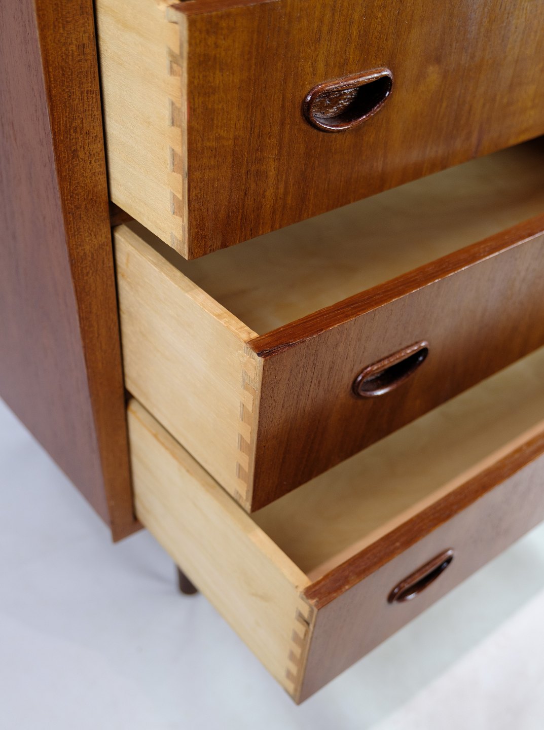 SolgtEn kommode i teak af dansk design fra 1960'erne er et dejligt eksempel på mid-century modern møbelstil, der stadig er populær i dag.