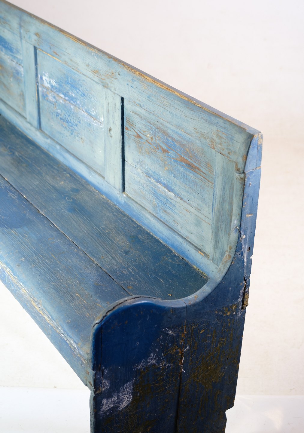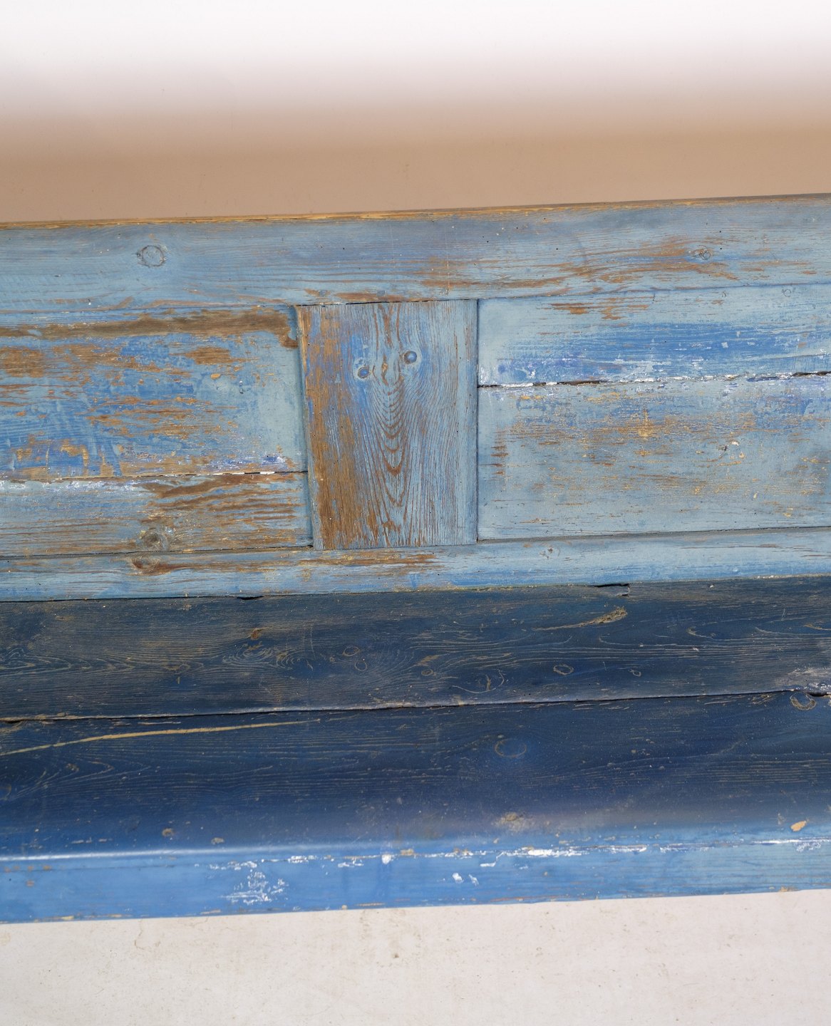 SolgtAntik slagbænk i Originale blåmalet farve i Fyrretræ fra omkring 1840'erne.