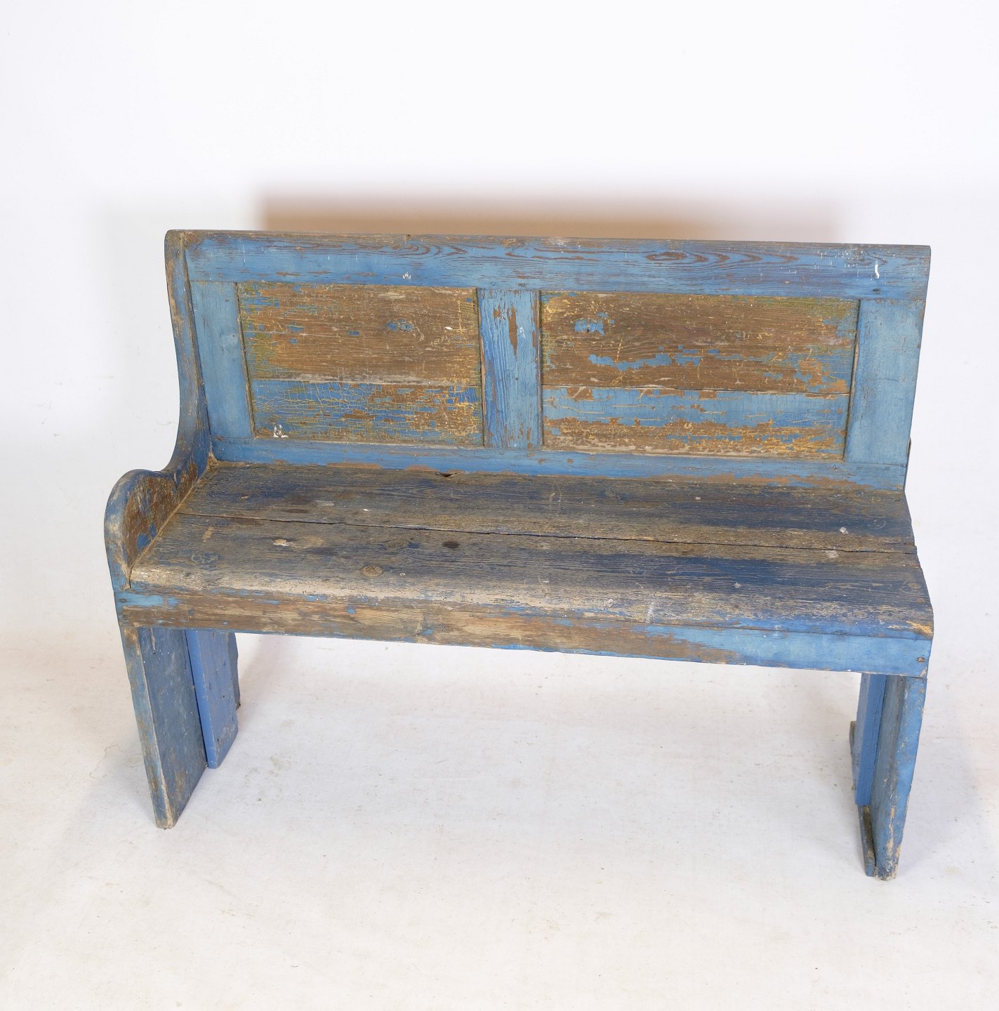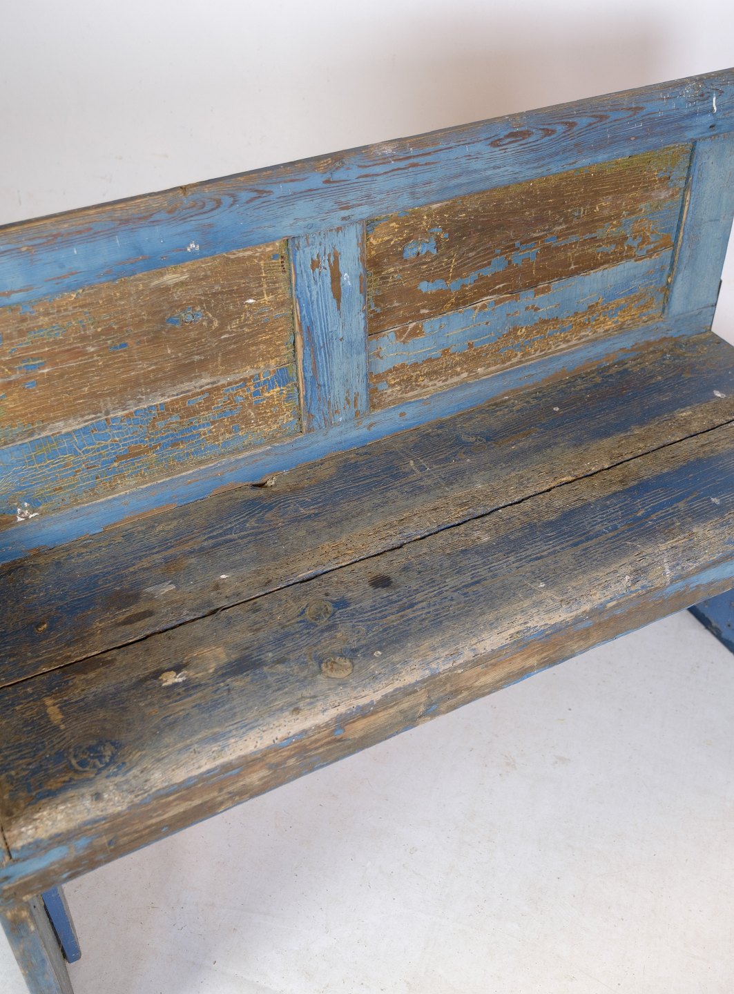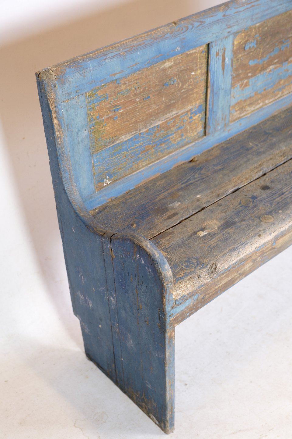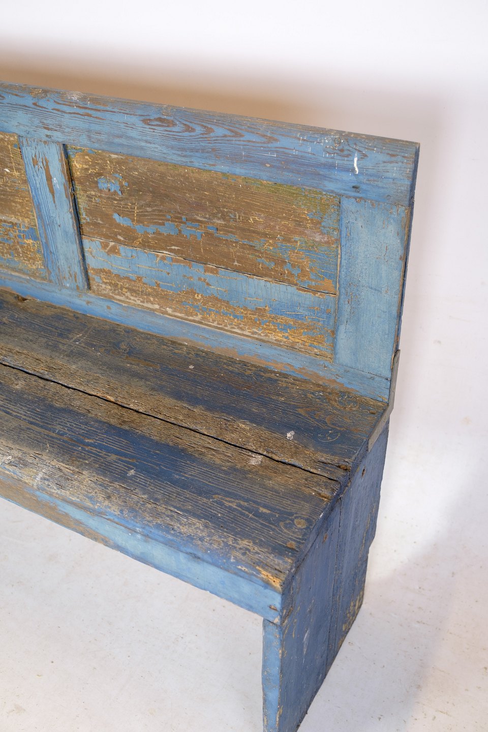 SolgtAntik slagbænk i blåmalet egetræ fra omkring 1840'erne.