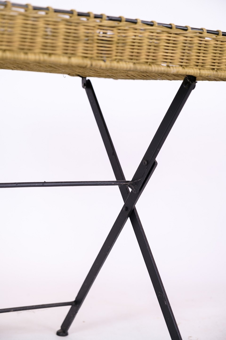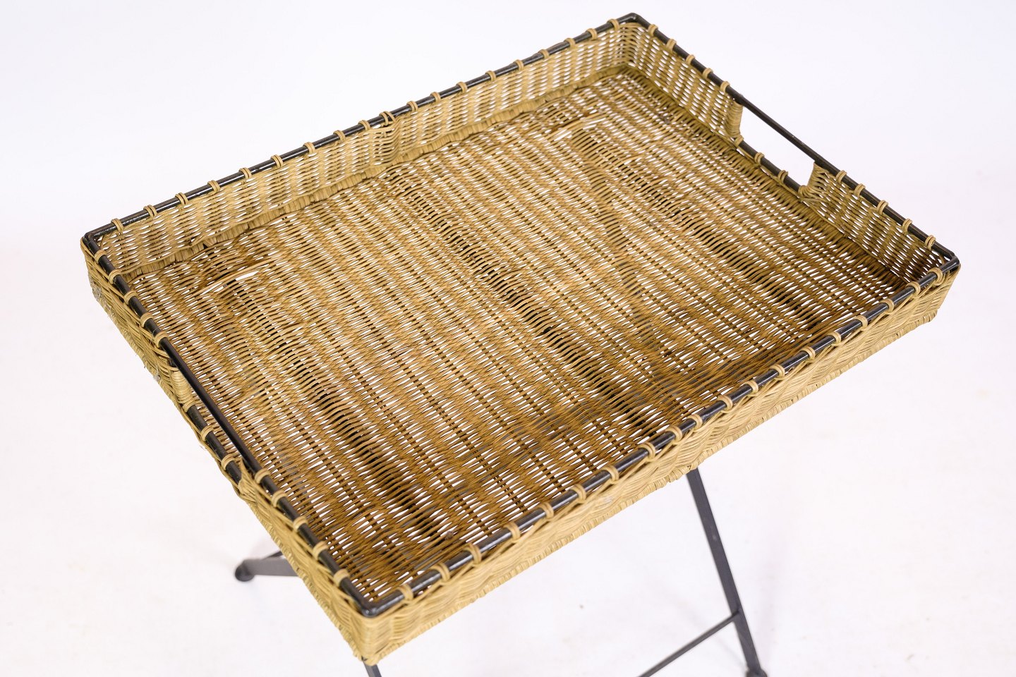 Sidebord med flet bakke og metal ben egner sig særdeles til konsolbord eller blomsterbord på altanen fra omkring 1970'erne