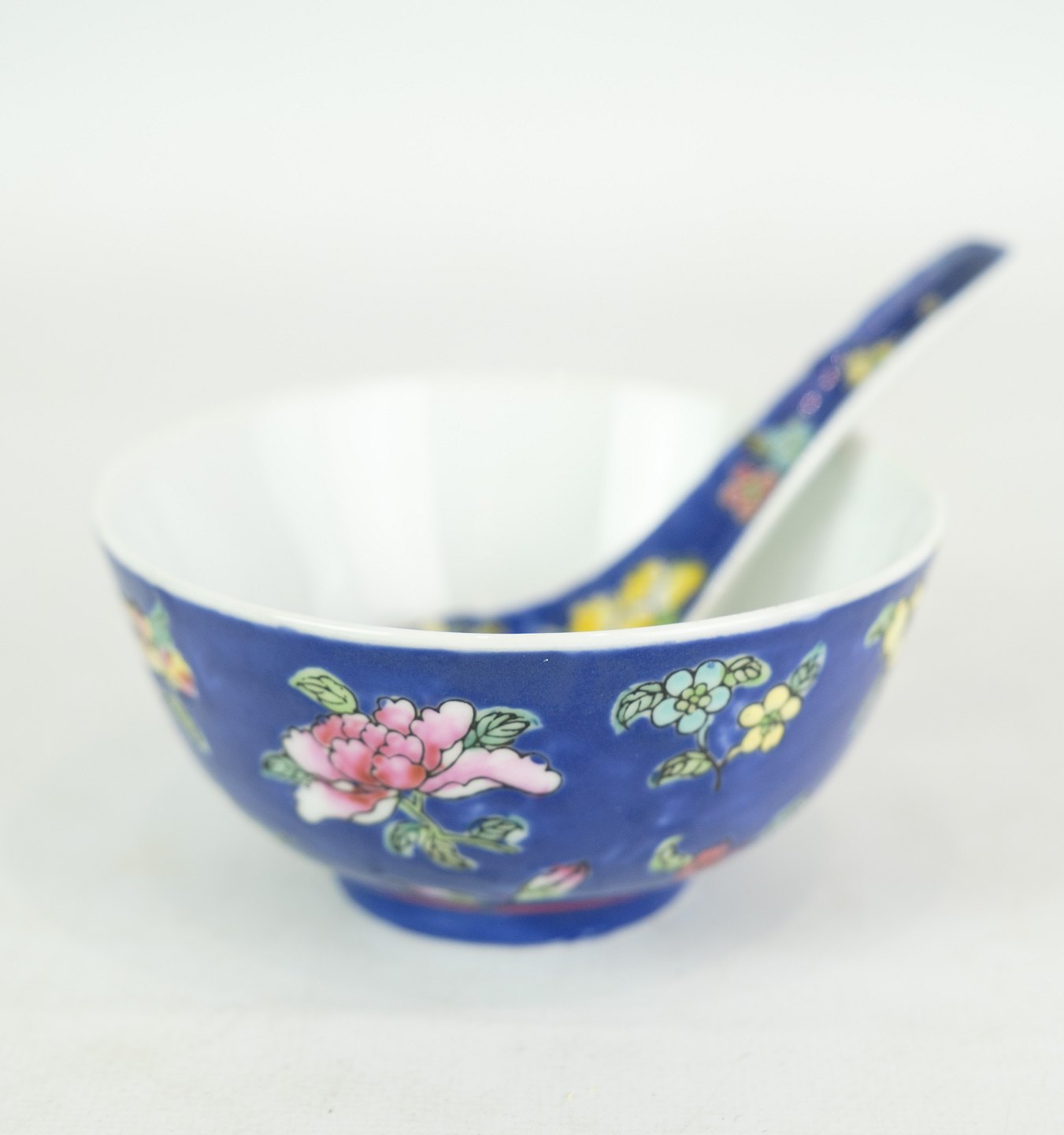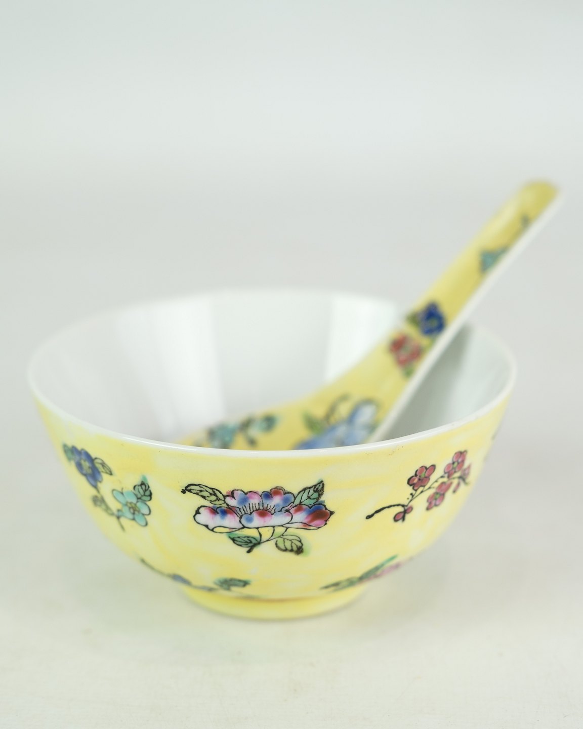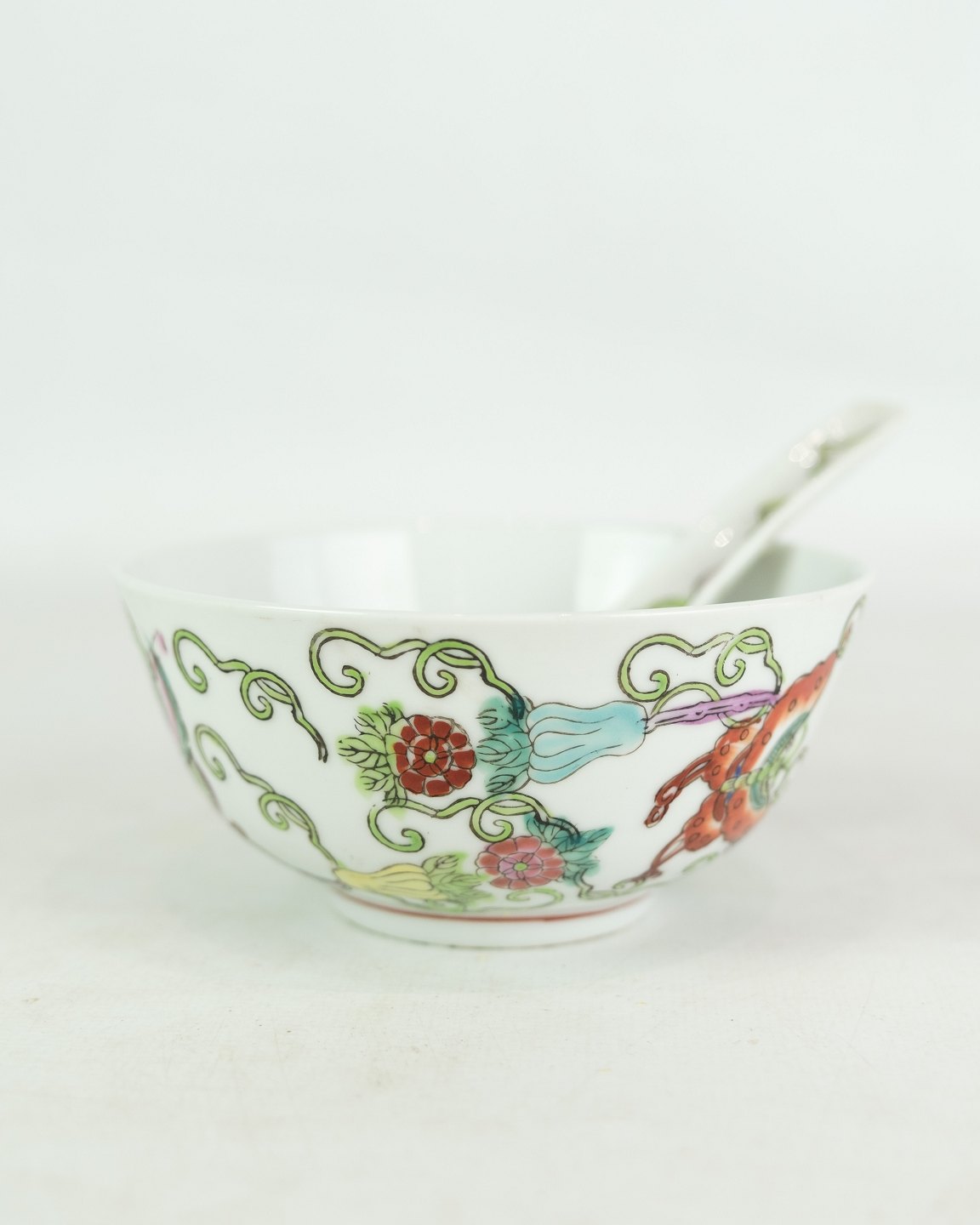 Set of four Chinese porcelain bowls and spoons from around the 1930s. Sold as a set only