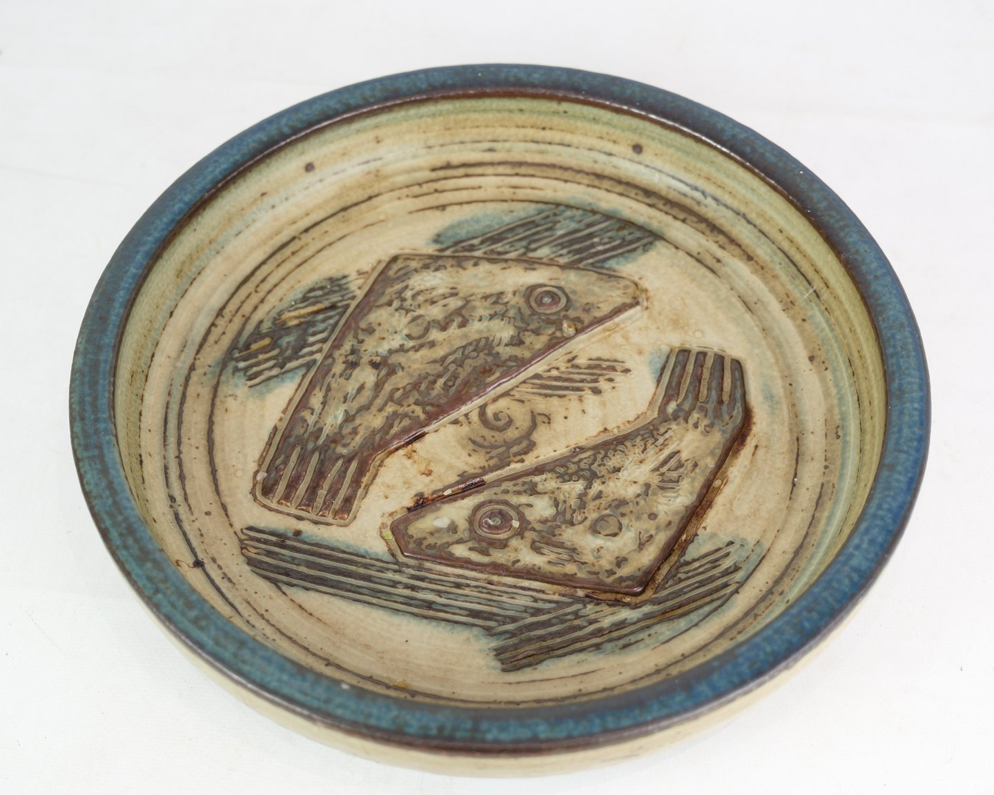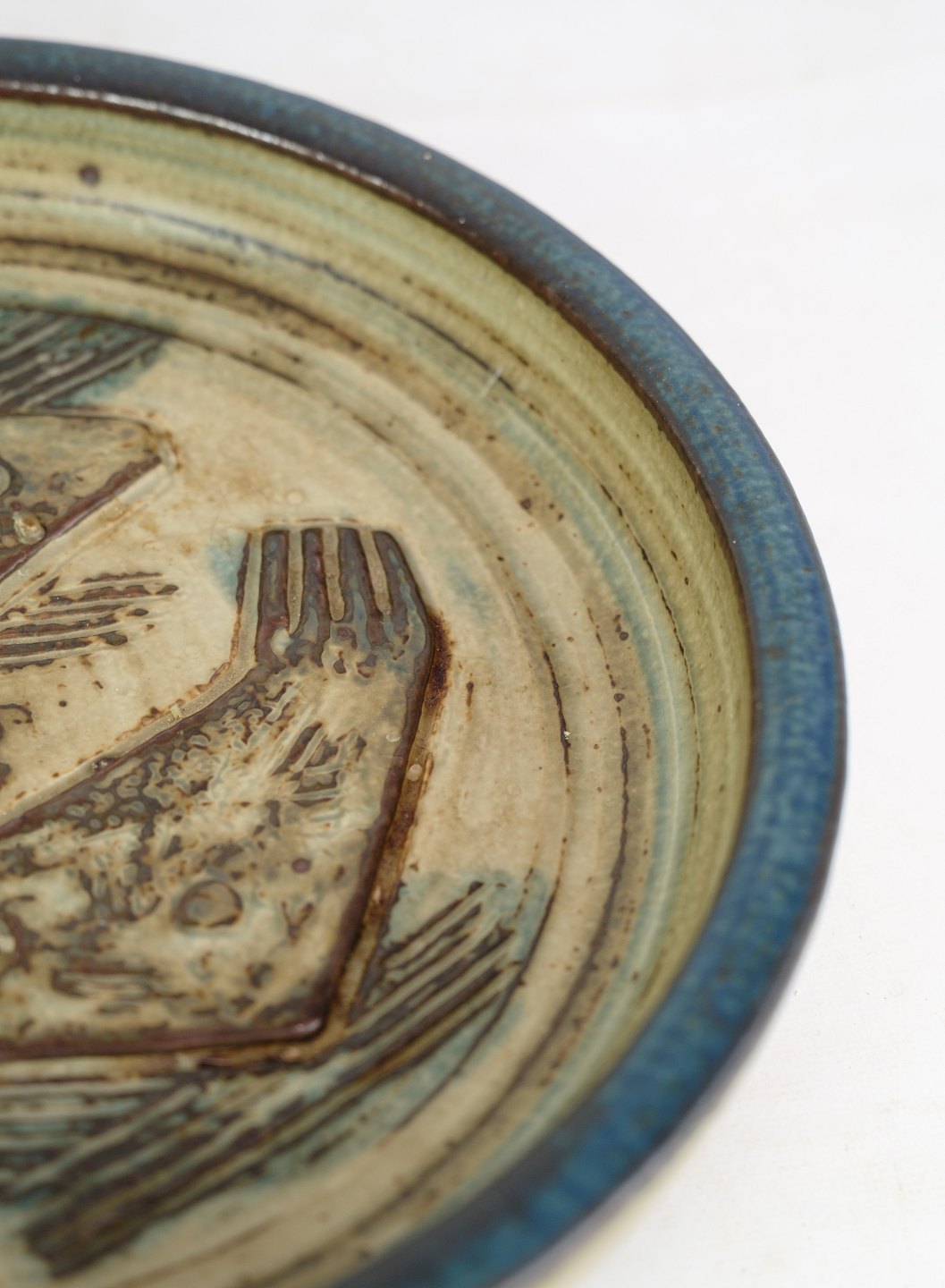 Motivet af fisk giver skålen et naturligt og maritimt præg, der kan bringe en følelse af natur og havet ind i dit hjem. Det er et eksempel på, hvordan keramisk kunst kan blive til smukke og funktionelle genstande, der også er kunstværker.