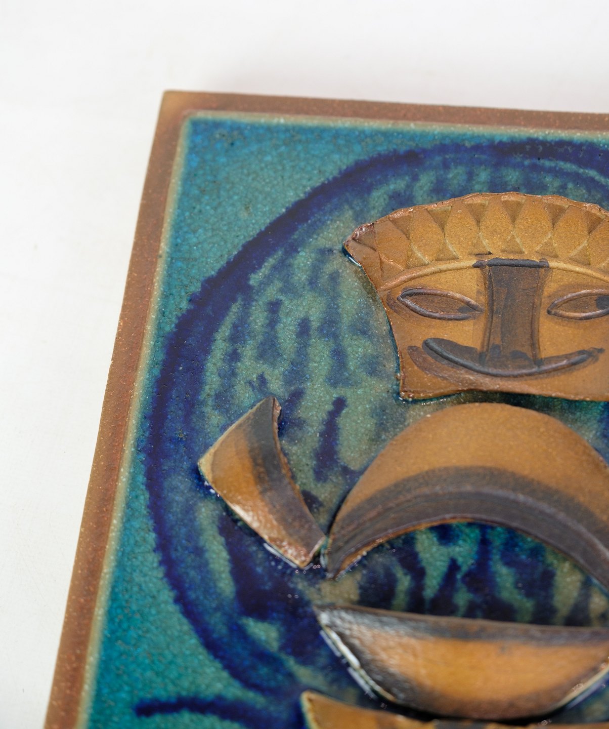 Relief of Søholm ceramics with an African motif with brown and bluish colors from around the 1960s.