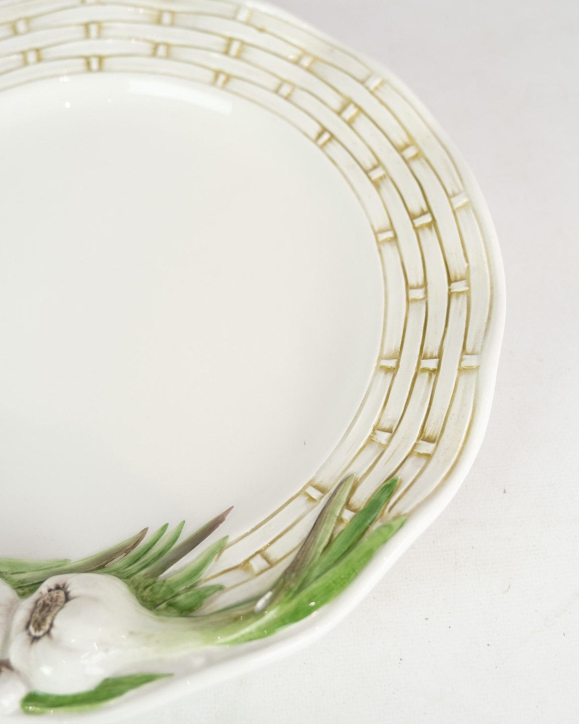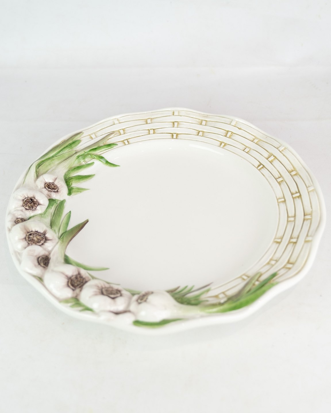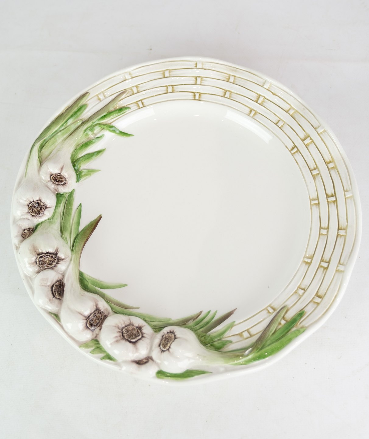White porcelain plates, decorated with garlic in Italian design. In excellent condition with no damage. (More in stock)