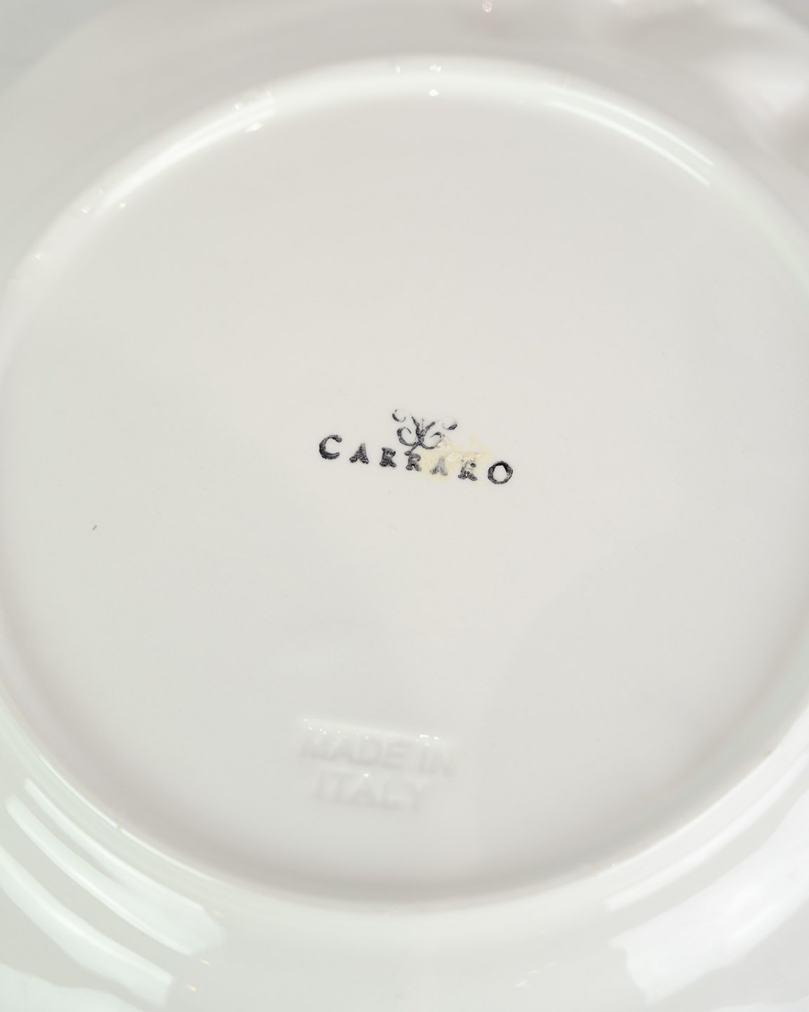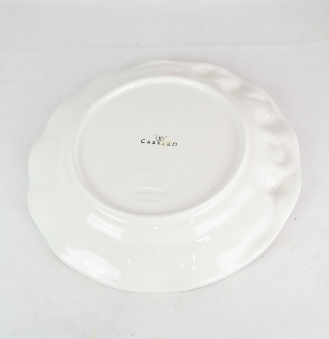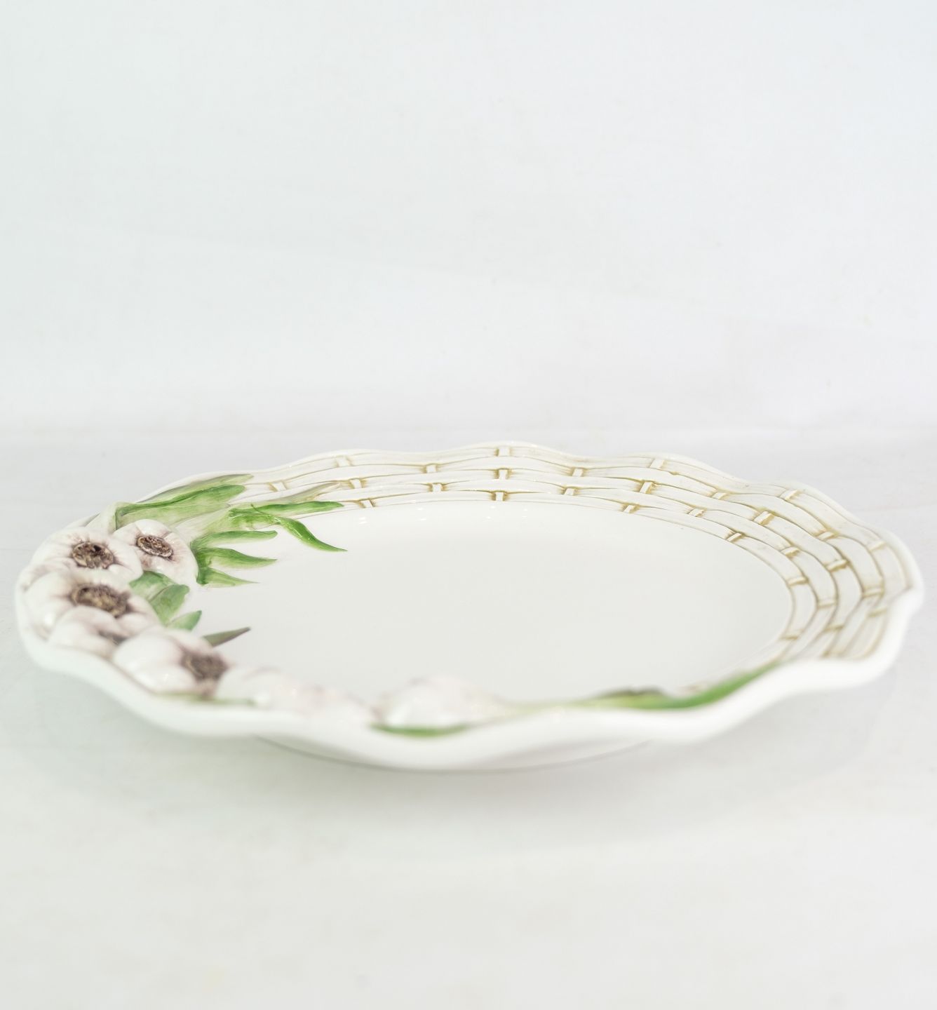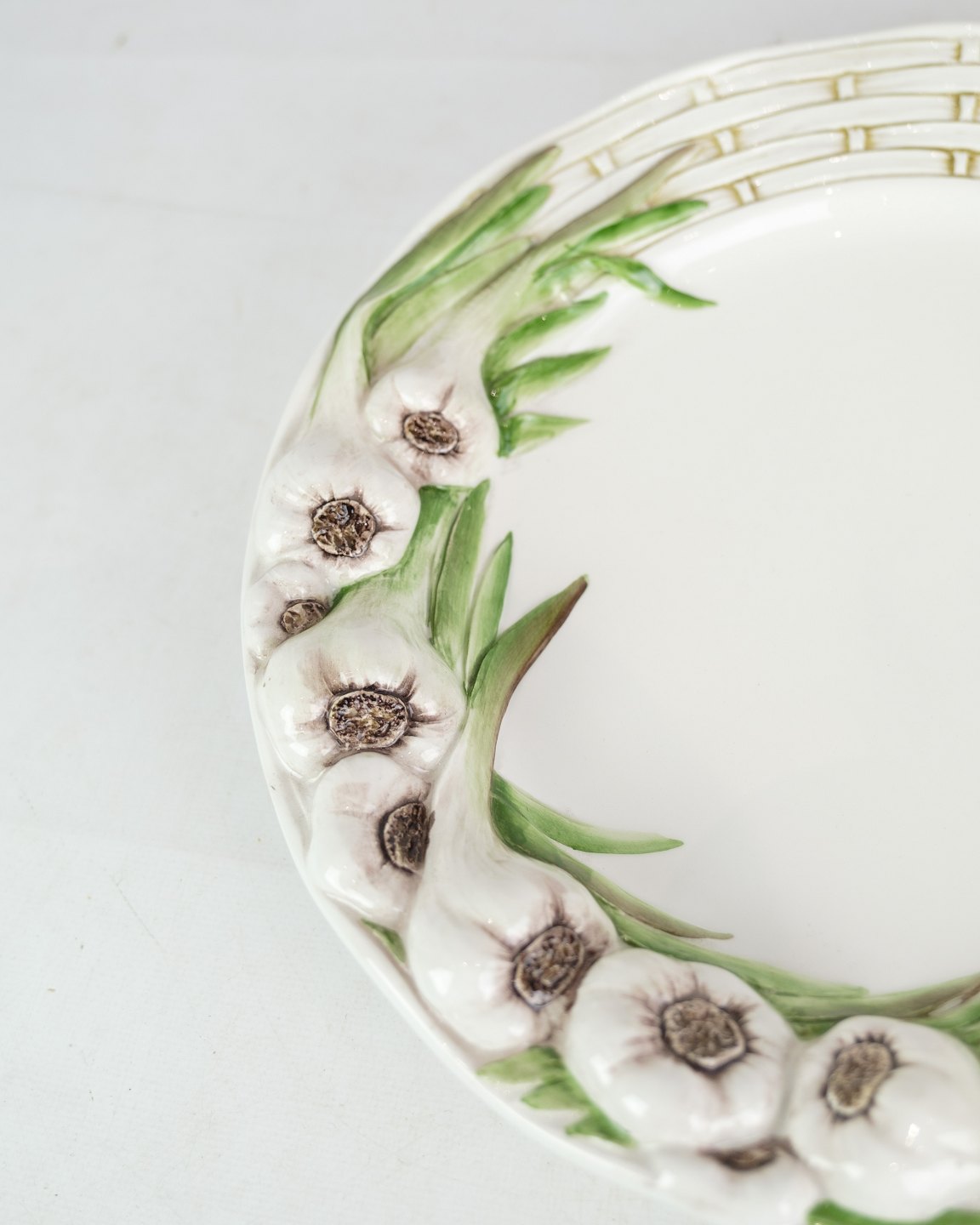 White porcelain plates, decorated with garlic in Italian design. In excellent condition with no damage. (More in stock)