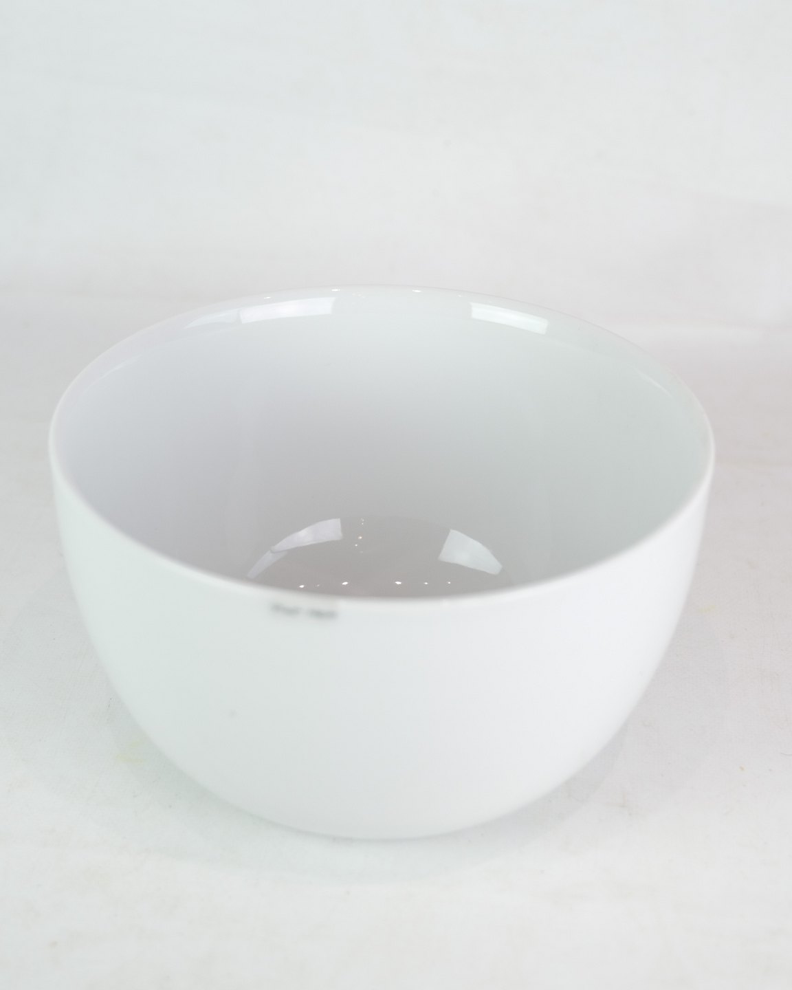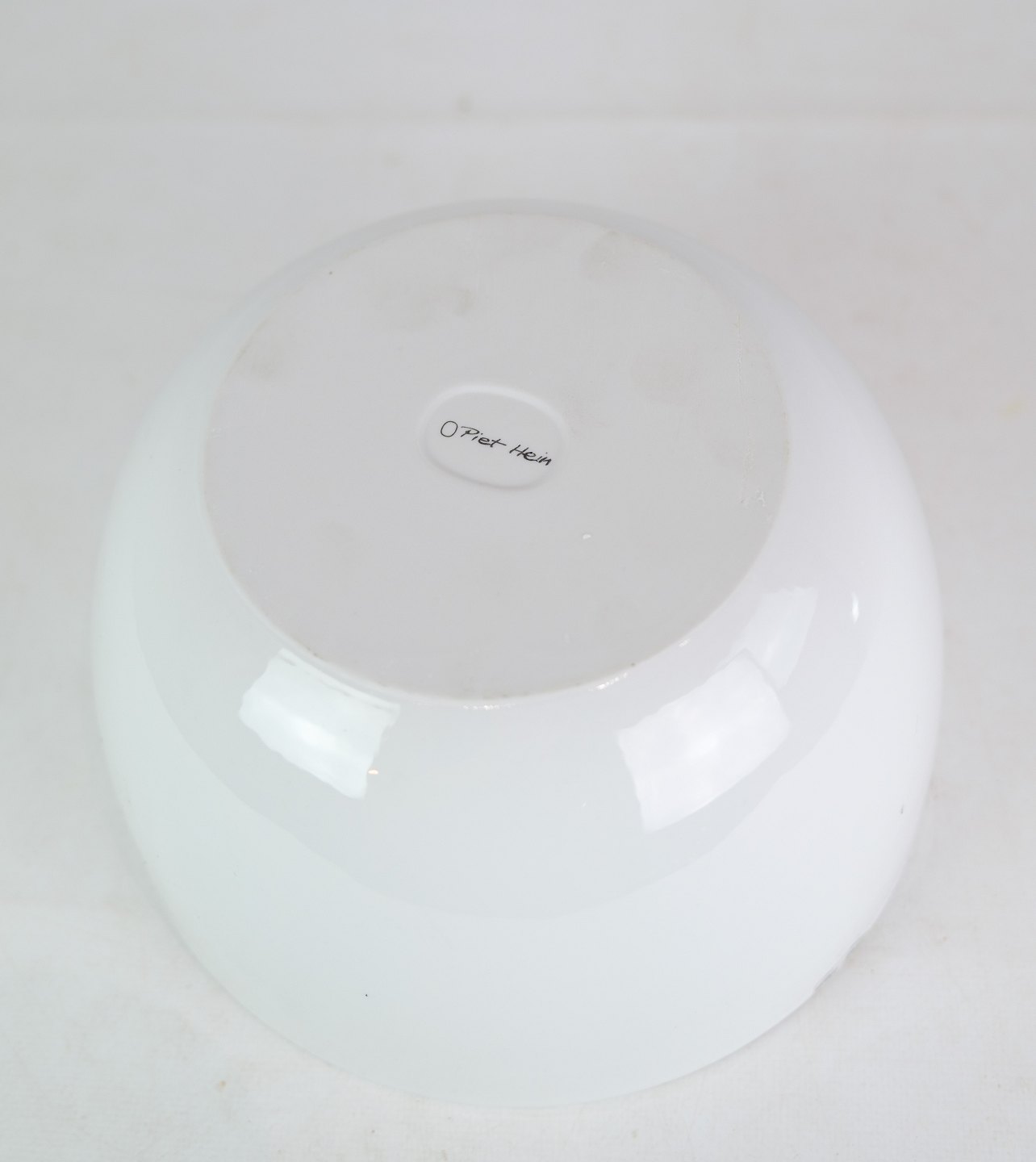 White porcelain bowl designed by Piet Hein. The bowl is oven, microwave, freezer and dishwasher safe as well as quick temperature changes, so you can take the bowl directly from the freezer and put it in a warm oven.