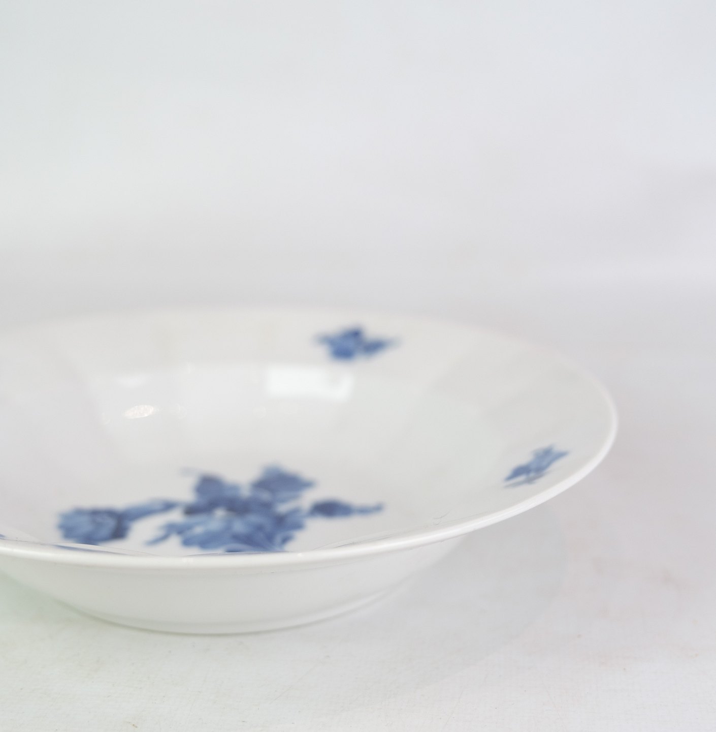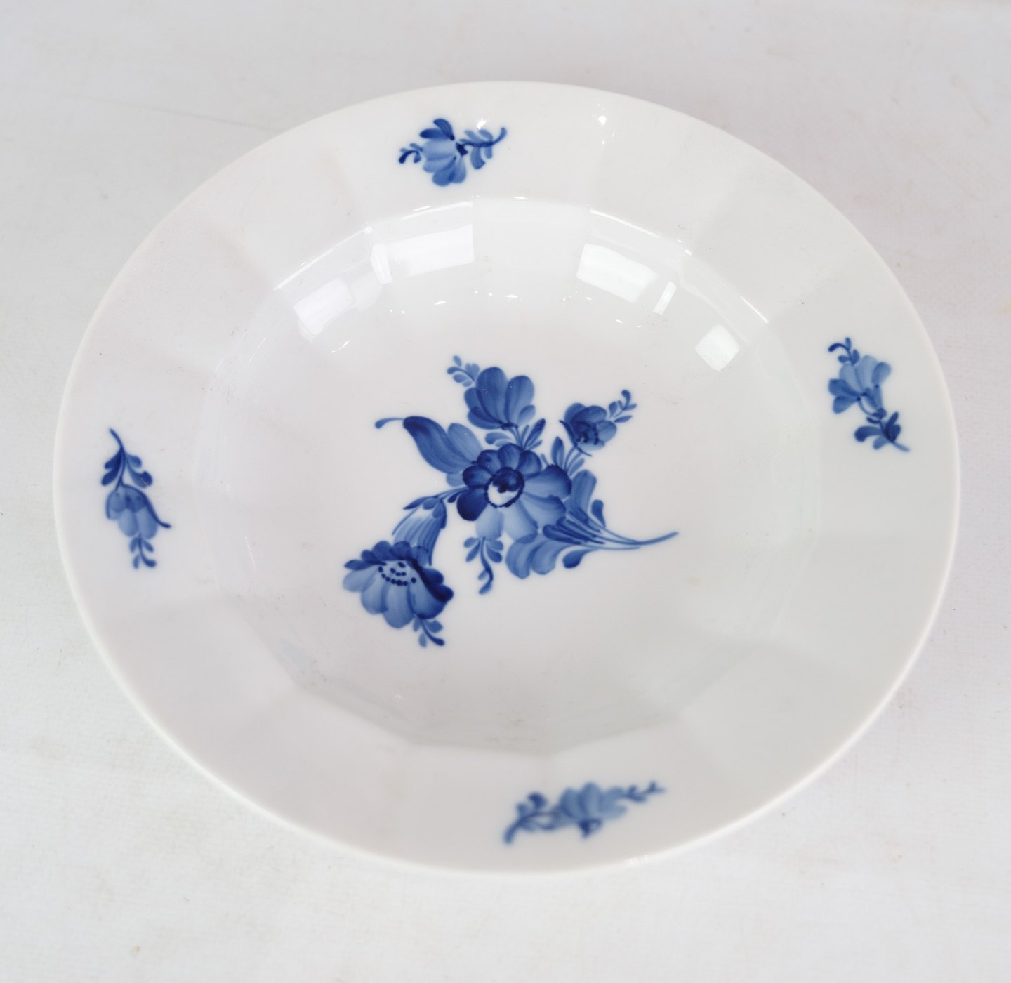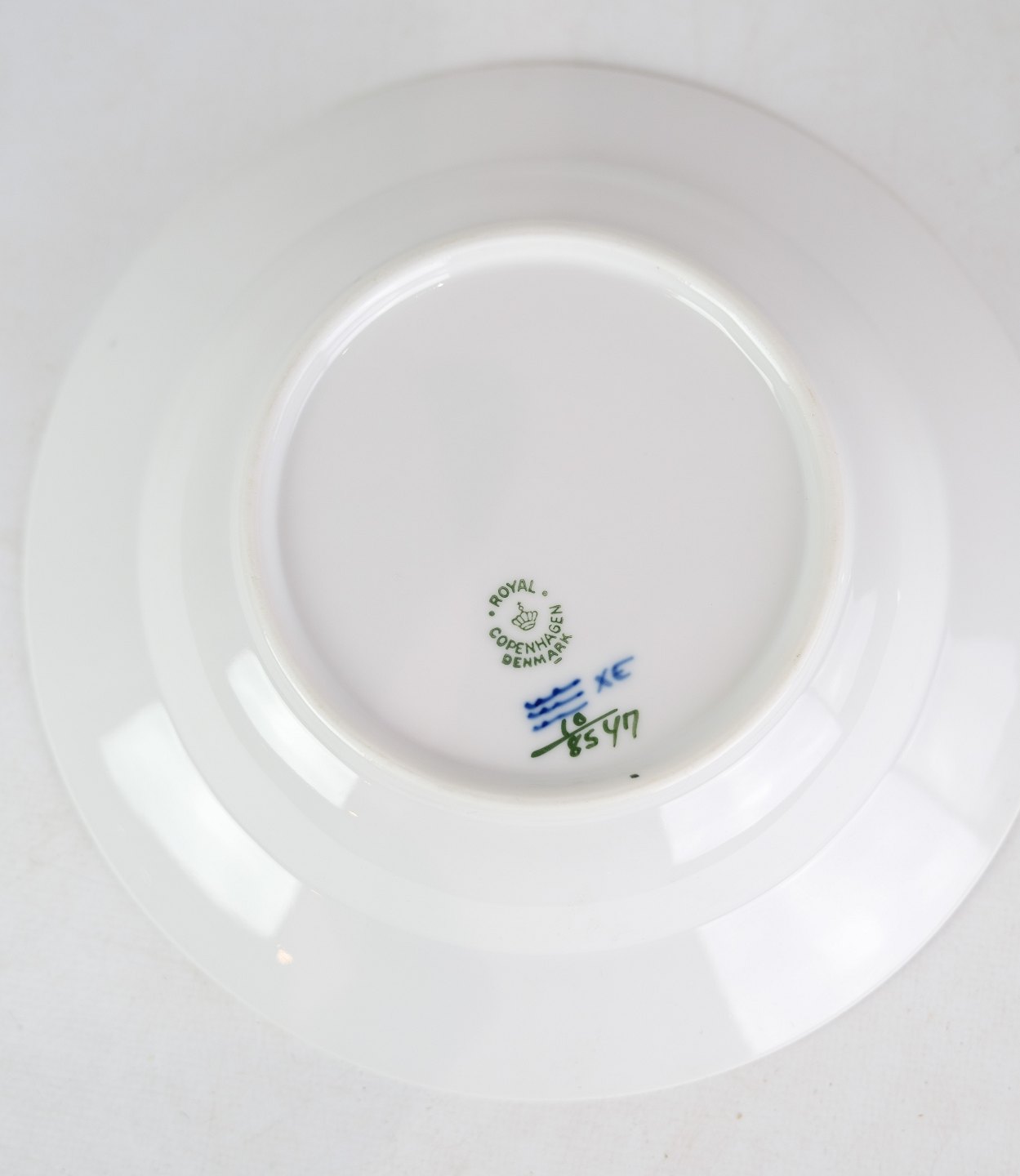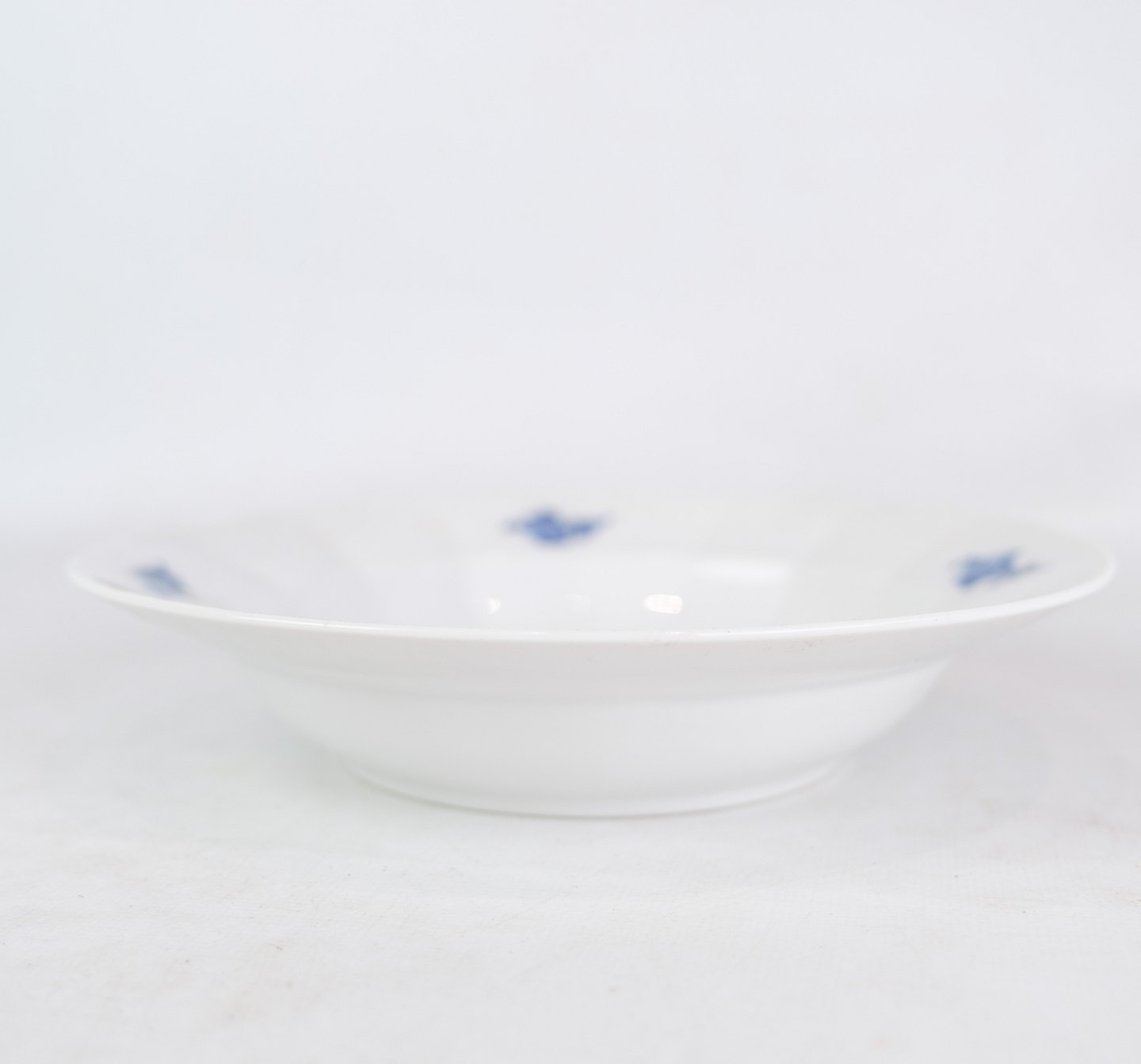 Deep plates by Royal Copenhagen with patterned blue flower edged with production number 10/8547.