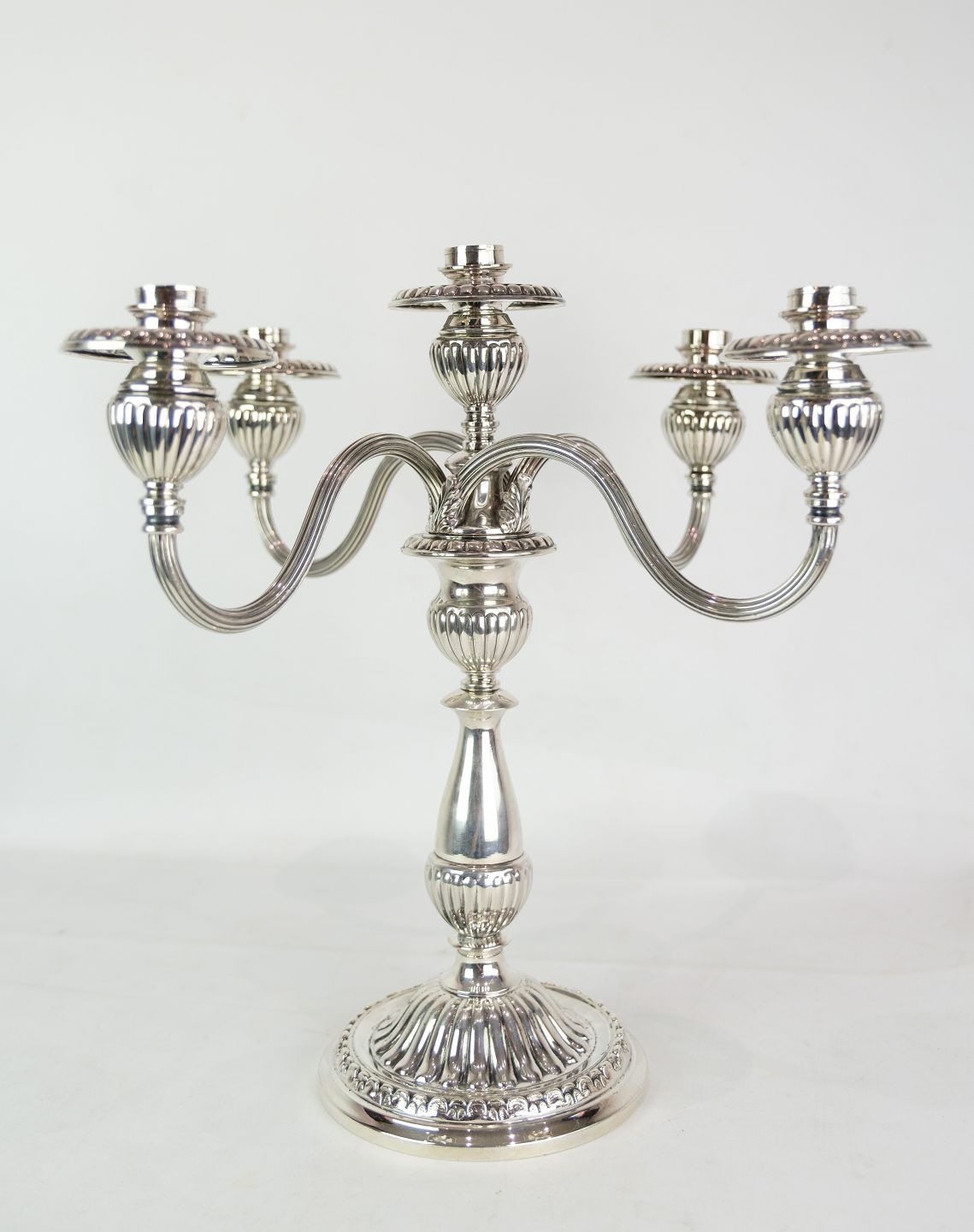 SoldFive-arm candlestick, stamped "industria peruana plata sterling 925 camusso", where the top can be removed and used as a single candlestick. Weight: 845g