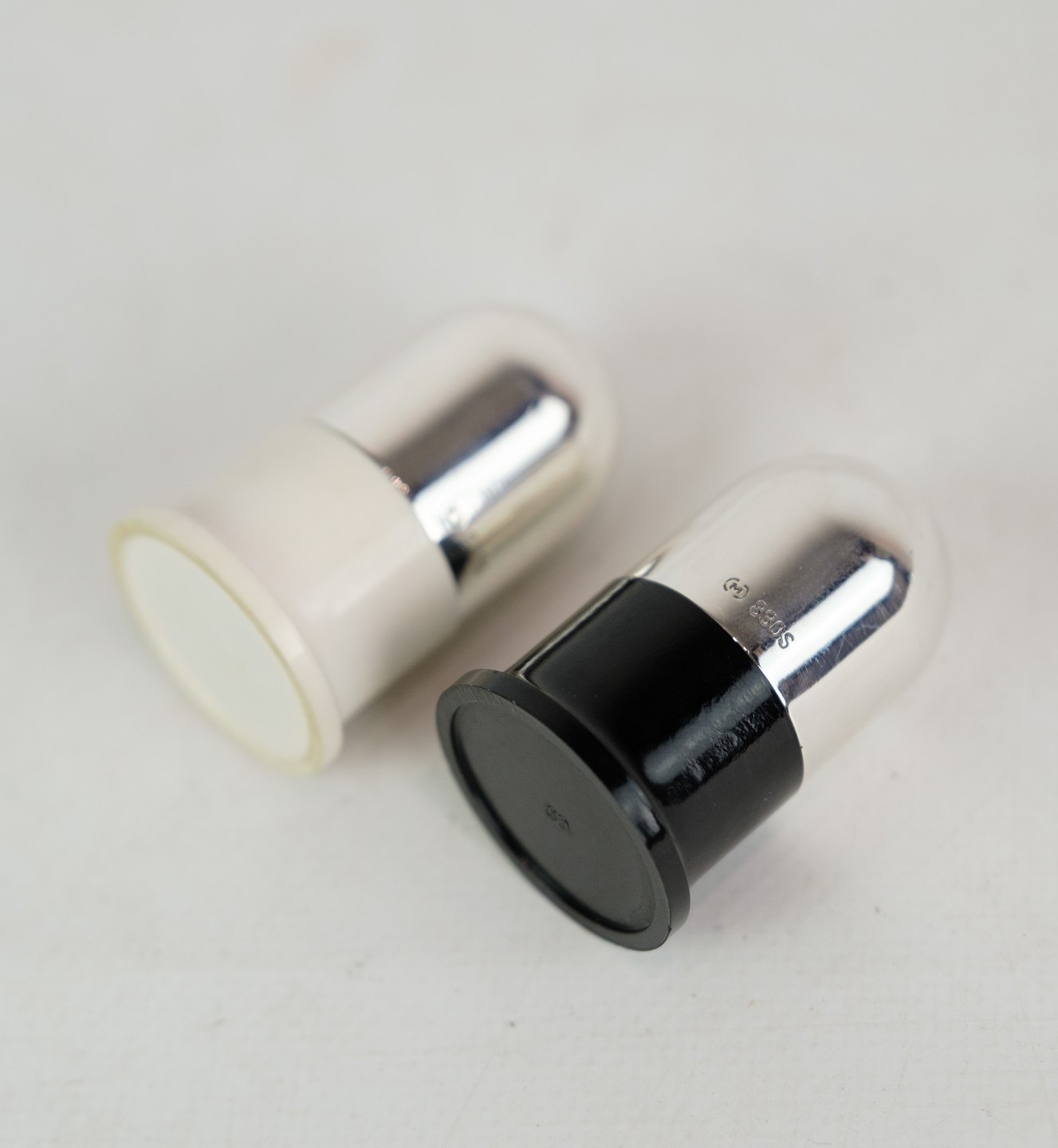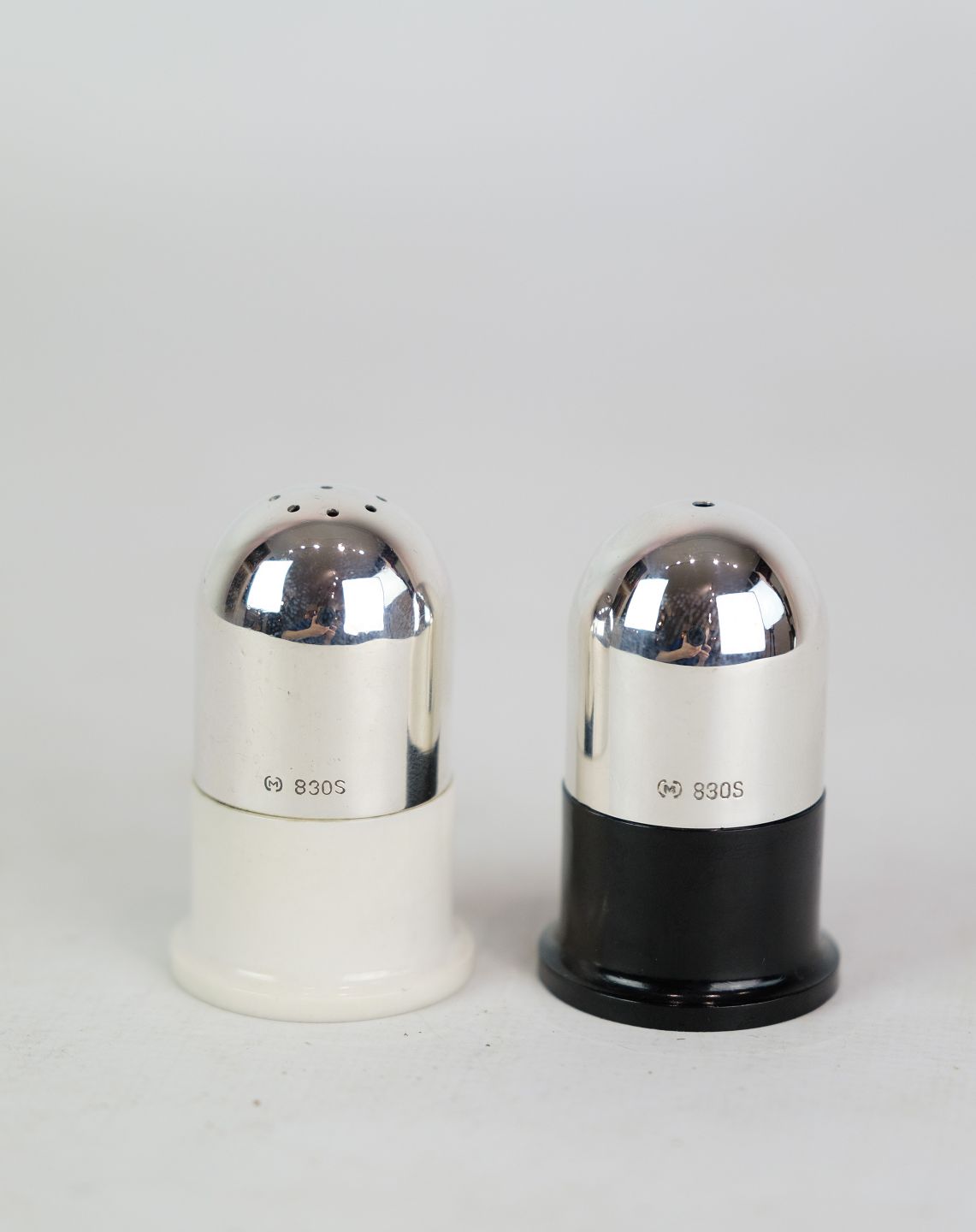 Salt og peber sæt, stemplet 830s med sort og hvid bund.