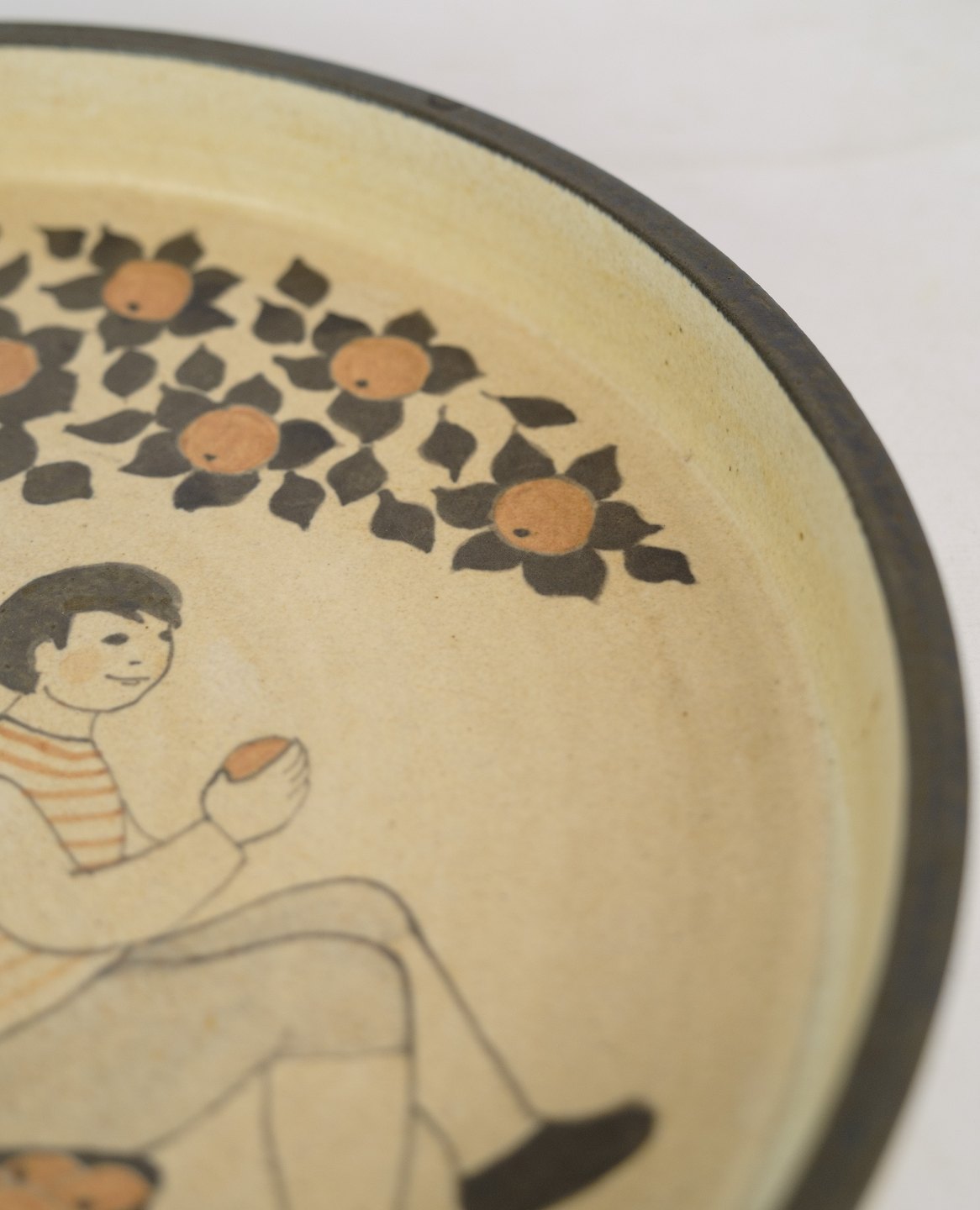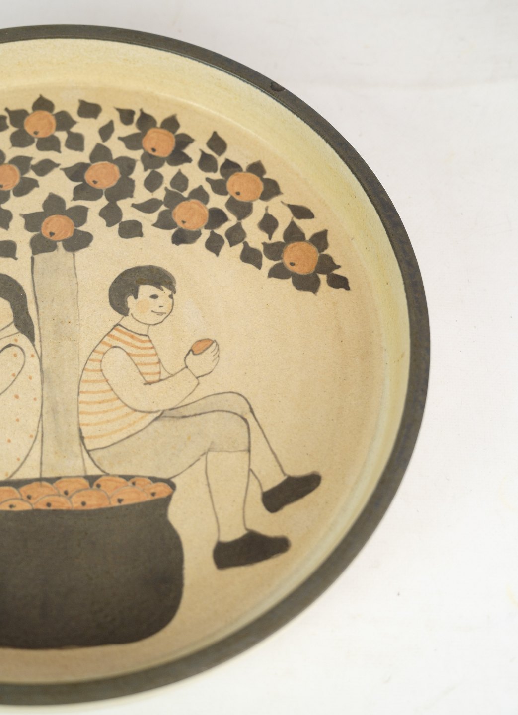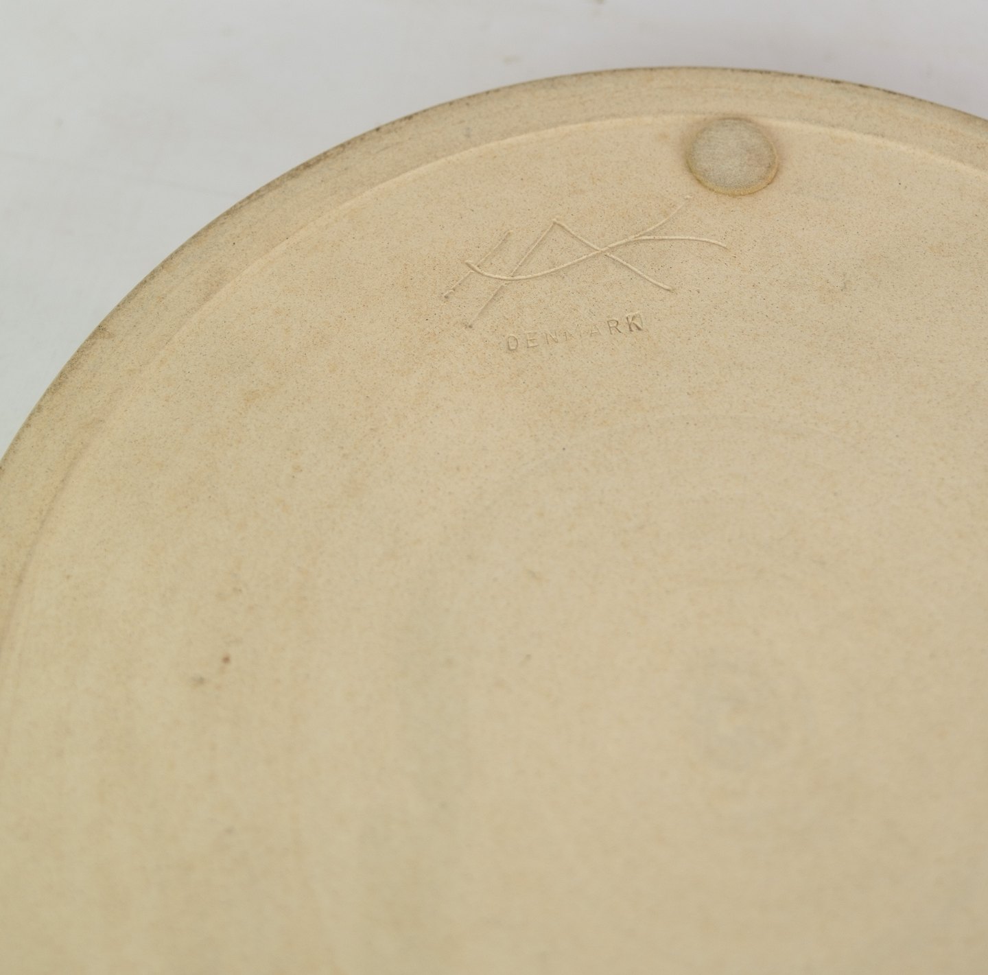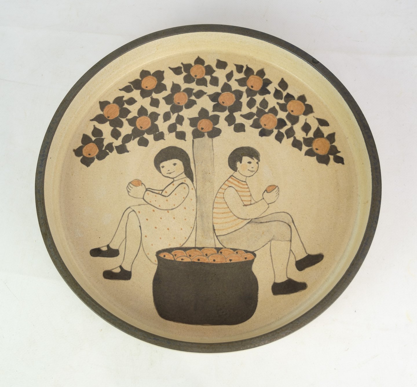 Round ceramic dish by Herman Kähler with motif of Adam and Eve. Excellent condition with no damage.