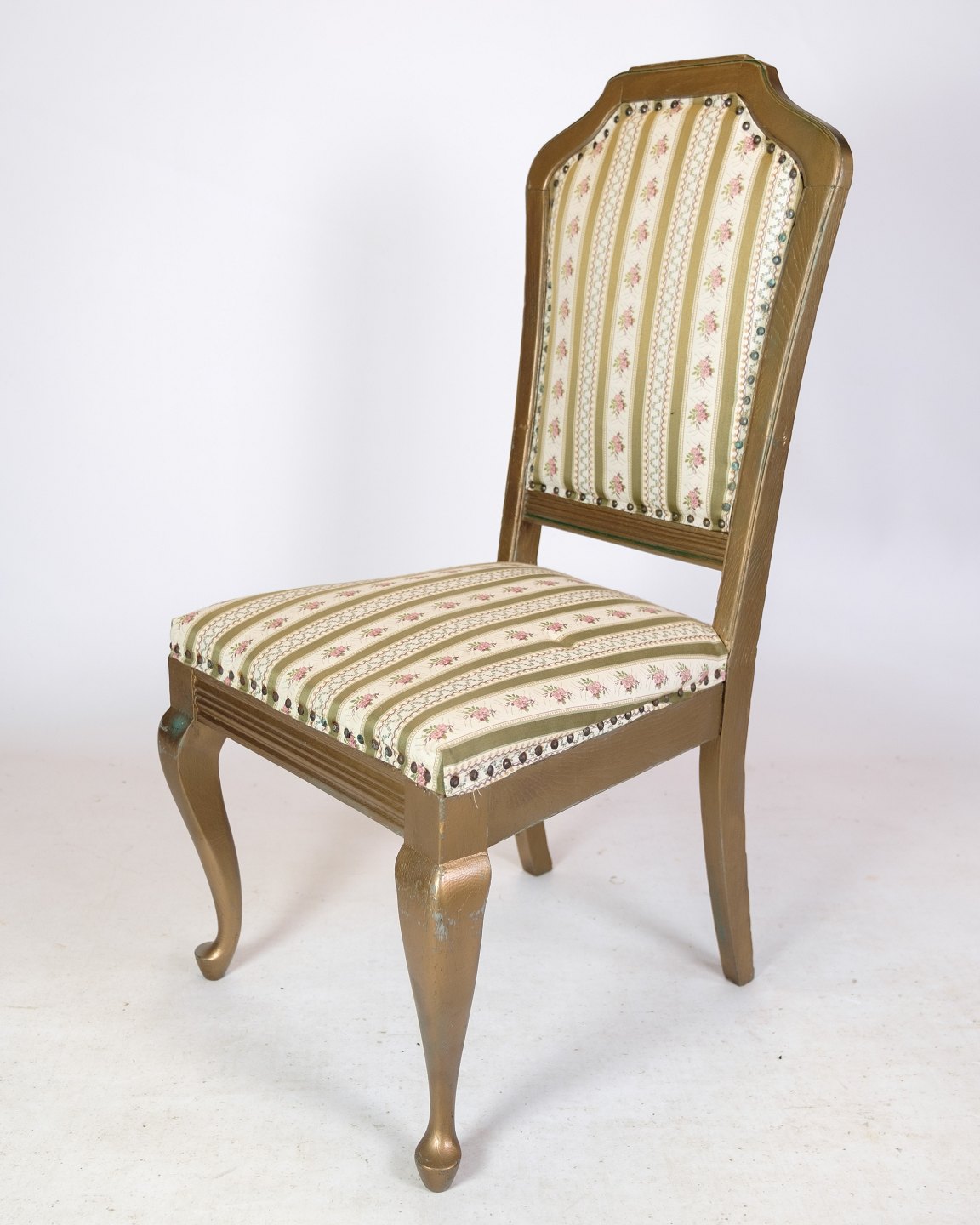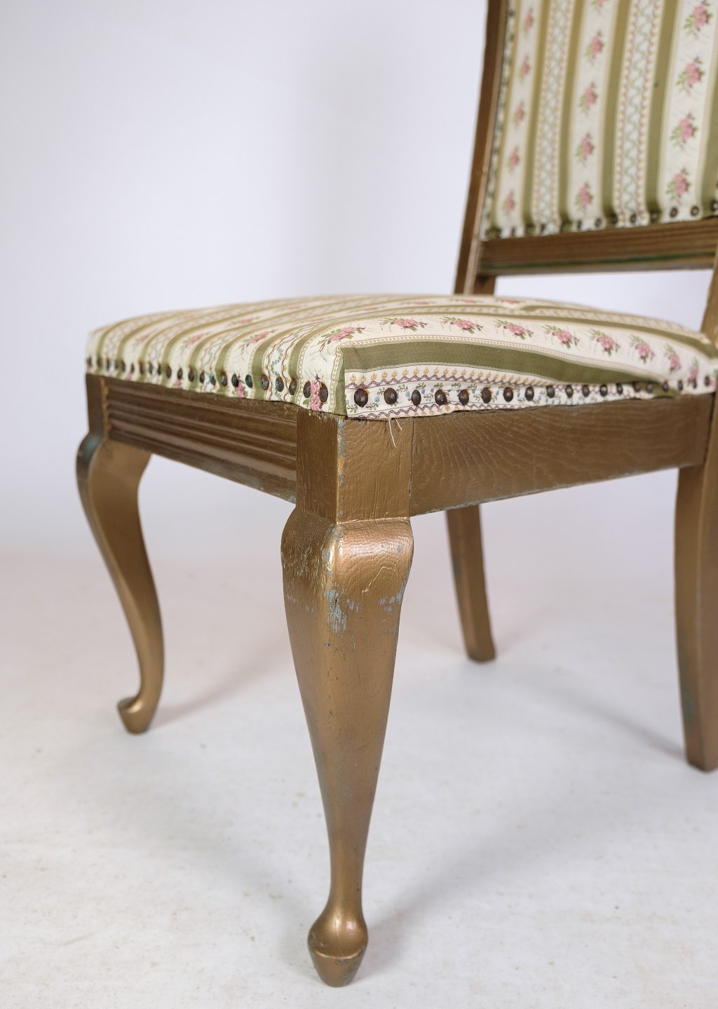 Sæt af fire antikke rococo stole i forgyldt træ med stribet stof fra omkring år 1930'erne.