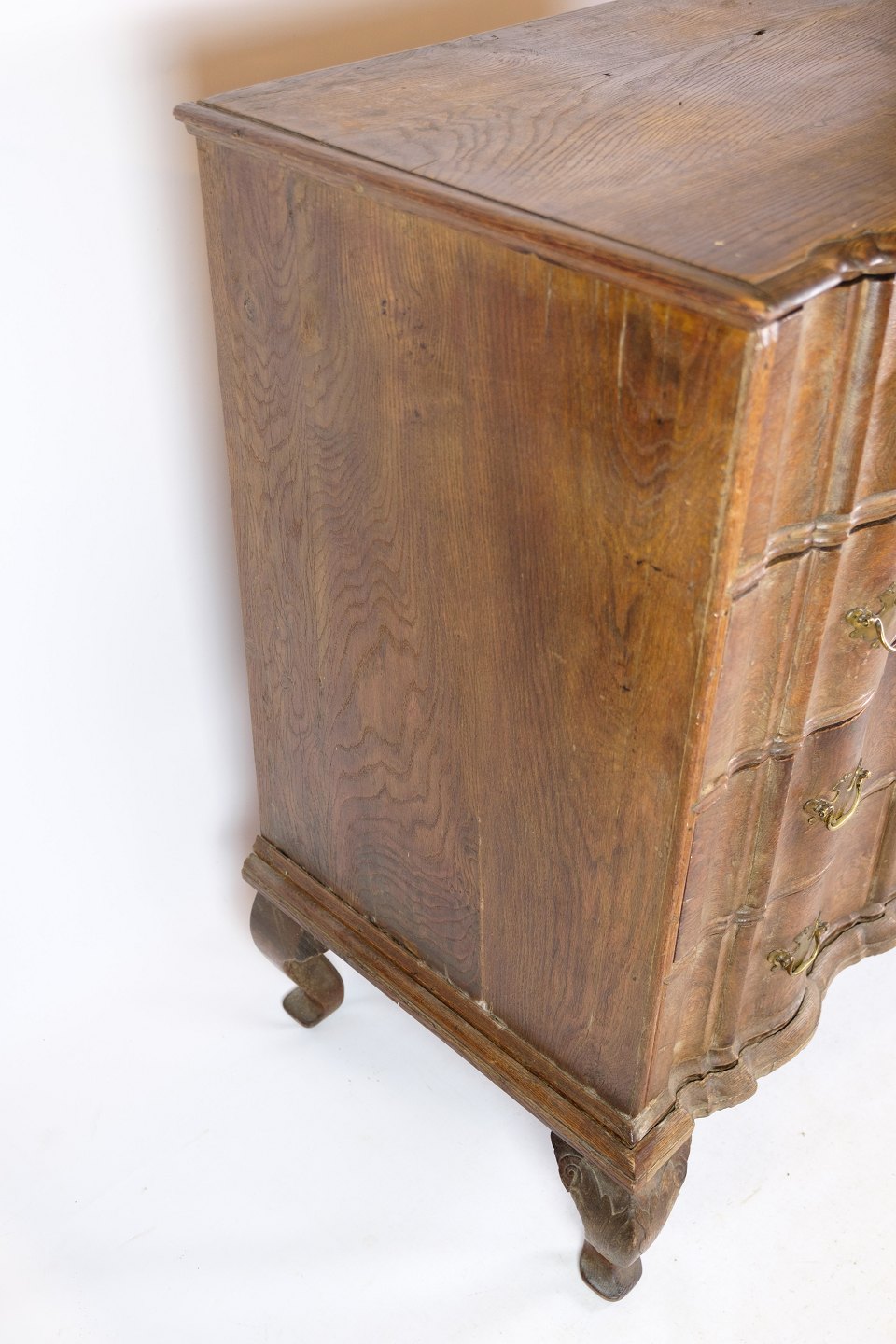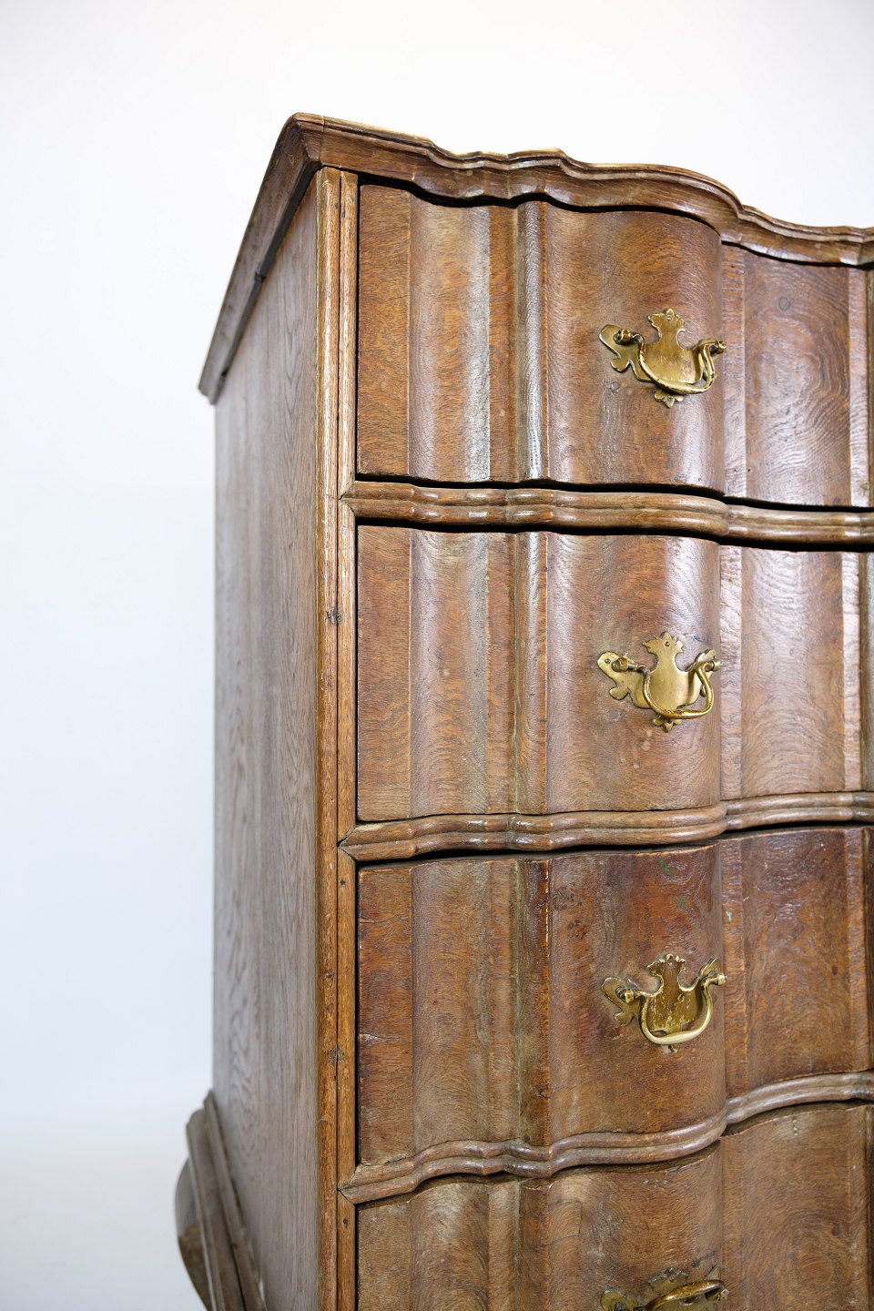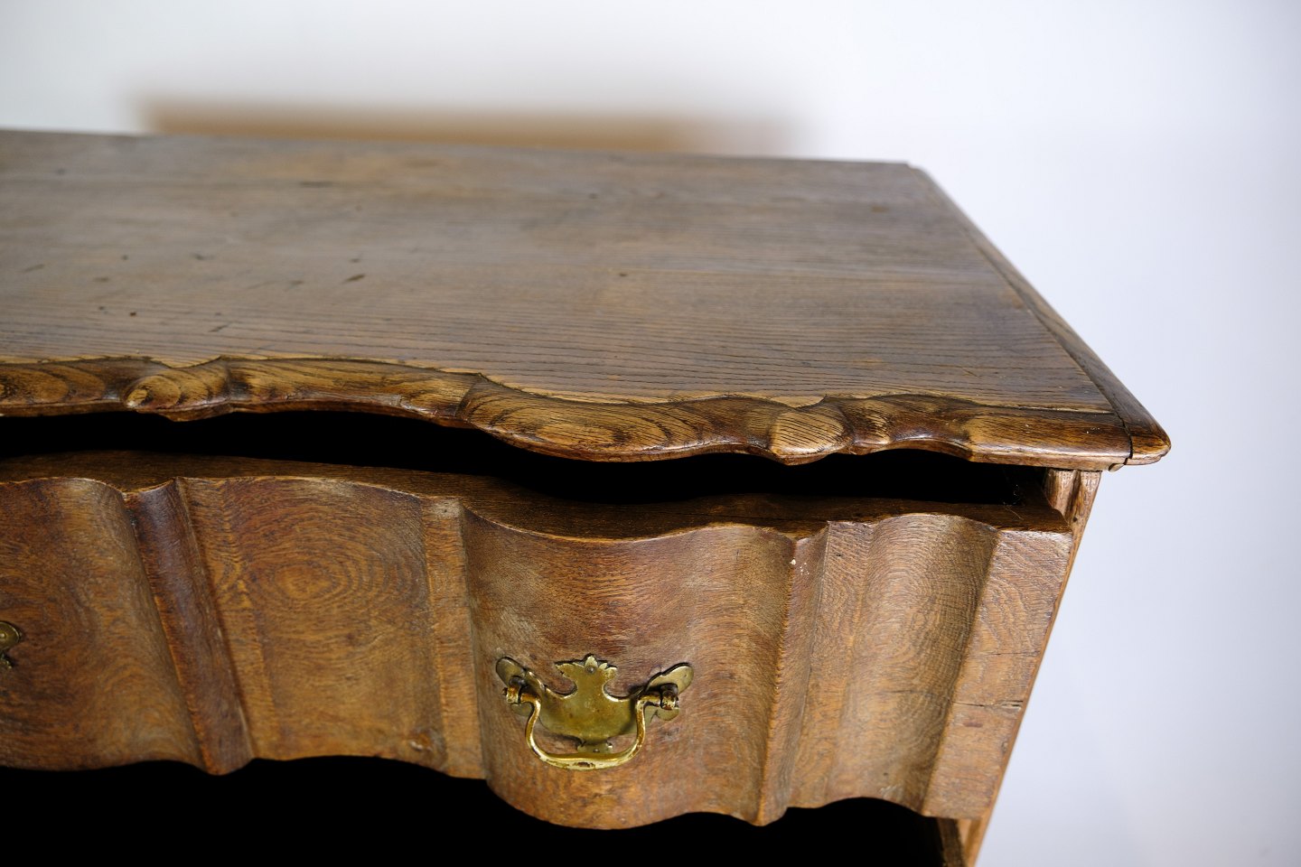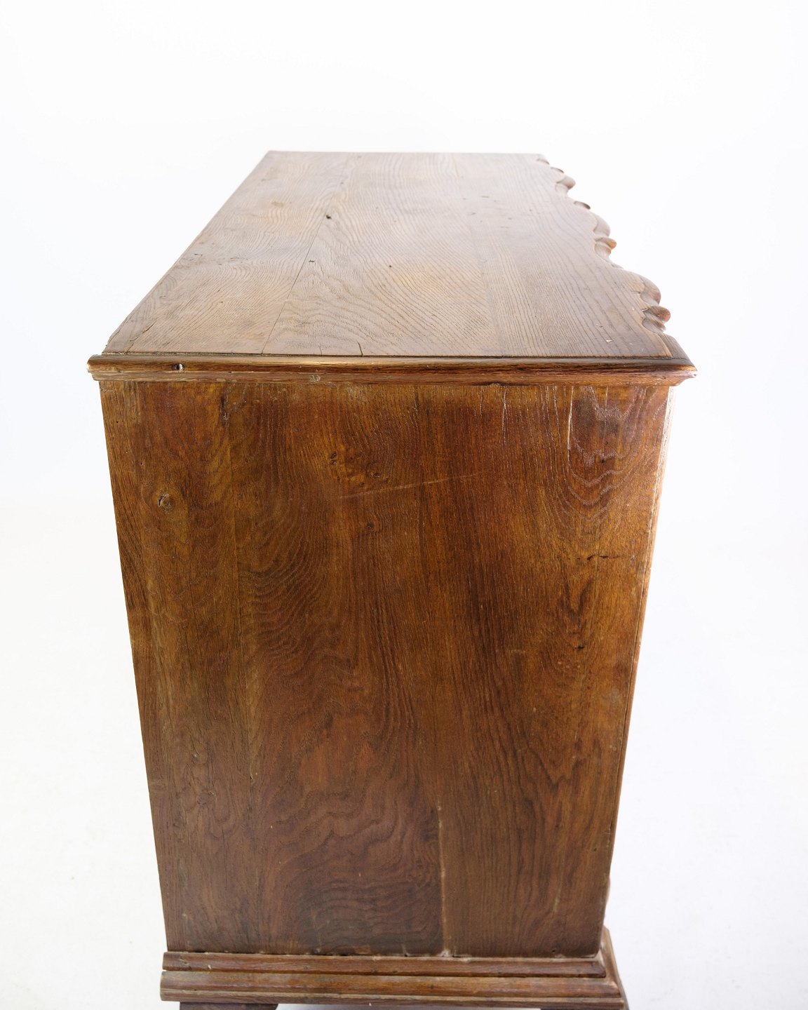 SolgtBarok dragkiste i egetræ med messing beslag udsmykket med træudskæringer fra perioden omkring 1780'erne.