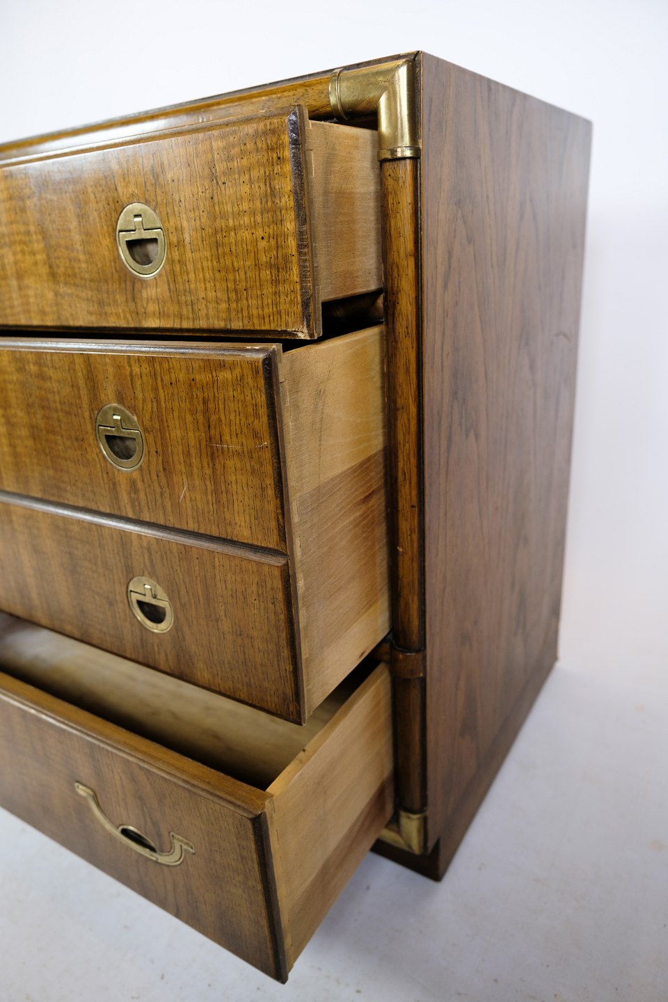 SoldAmerican chest of drawers with 4 drawers and brass handles from about 1920s made by Drexel furniture company, North Carolina