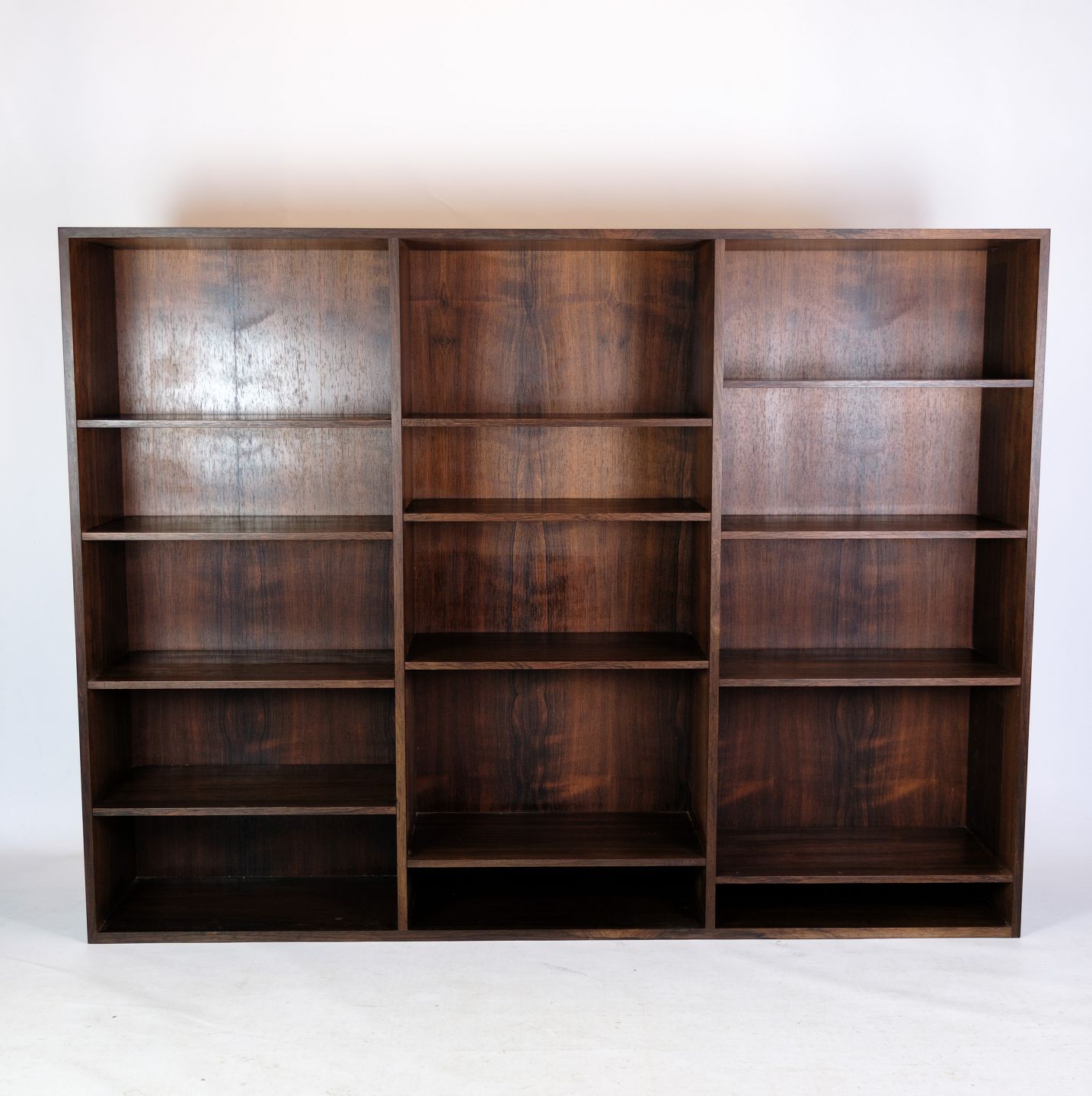 Få et imponerende stykke dansk designhistorie med denne store bogreol fremstillet i palisander fra omkring 1960'erne. Denne bogreol udstråler tidløs elegance og funktionalitet, som er karakteristisk for dansk møbeldesign fra denne æra.