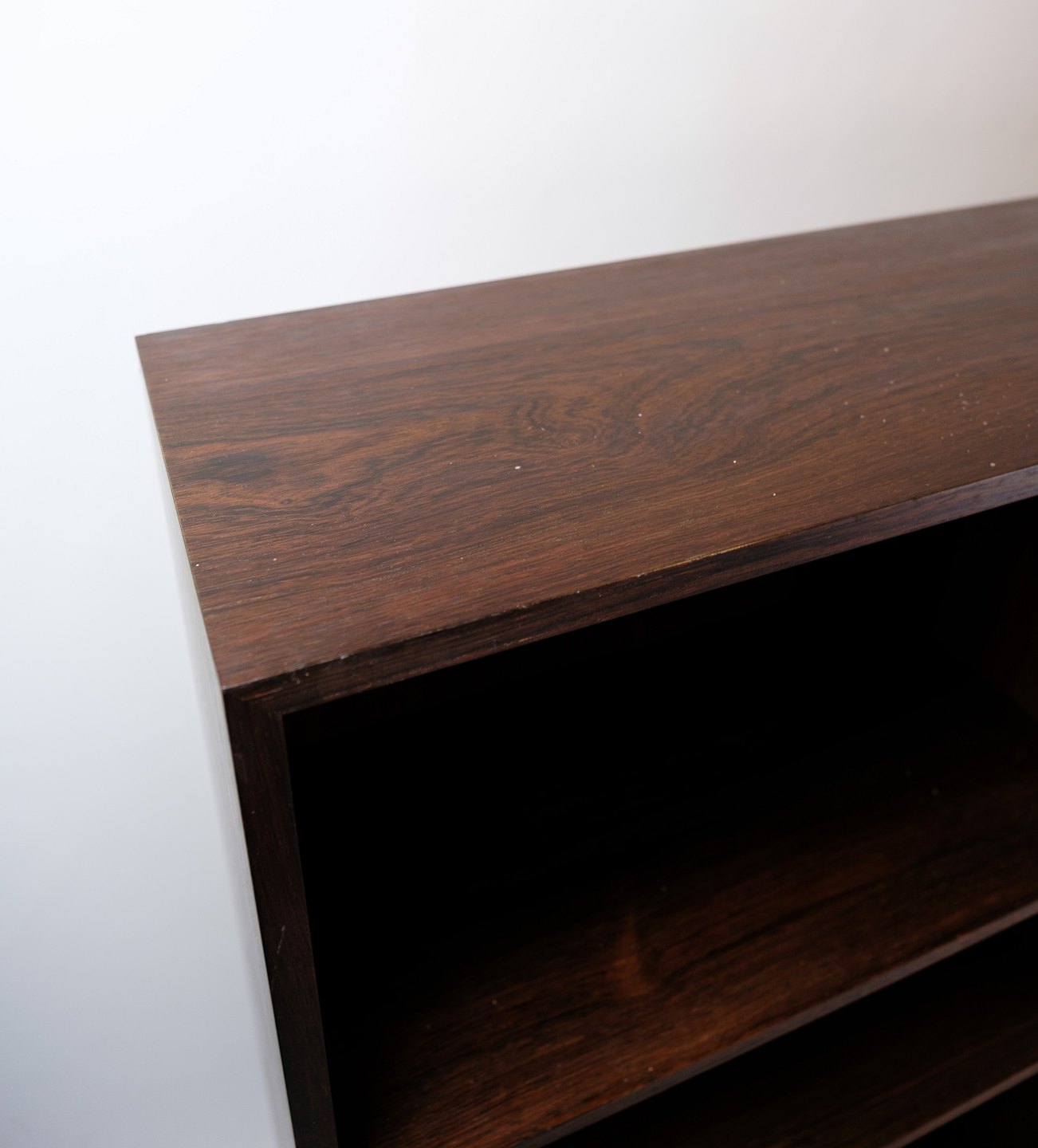 Palisandertræets varme farver og smukke årer tilføjer en luksuriøs følelse til ethvert rum, samtidig med at den rummelige opbevaringsplads giver plads til dine bøger, dekorationer og personlige genstande. Med sit imponerende udseende og håndværksmæssige kvalitet vil denne bogreol være et iøjnefaldende og praktisk møbelstykke, der vil berige dit hjem med sin skønhed og funktionalitet.