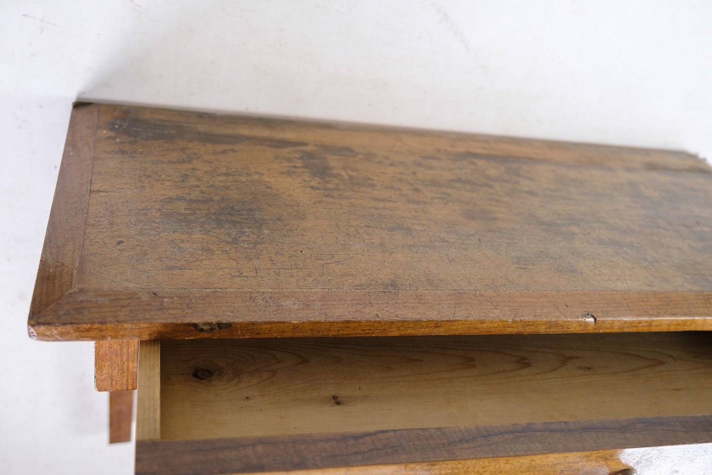 SolgtOphængt vægkonsol med skuffe udført i nøddetræ fra omkring 1920'erne.