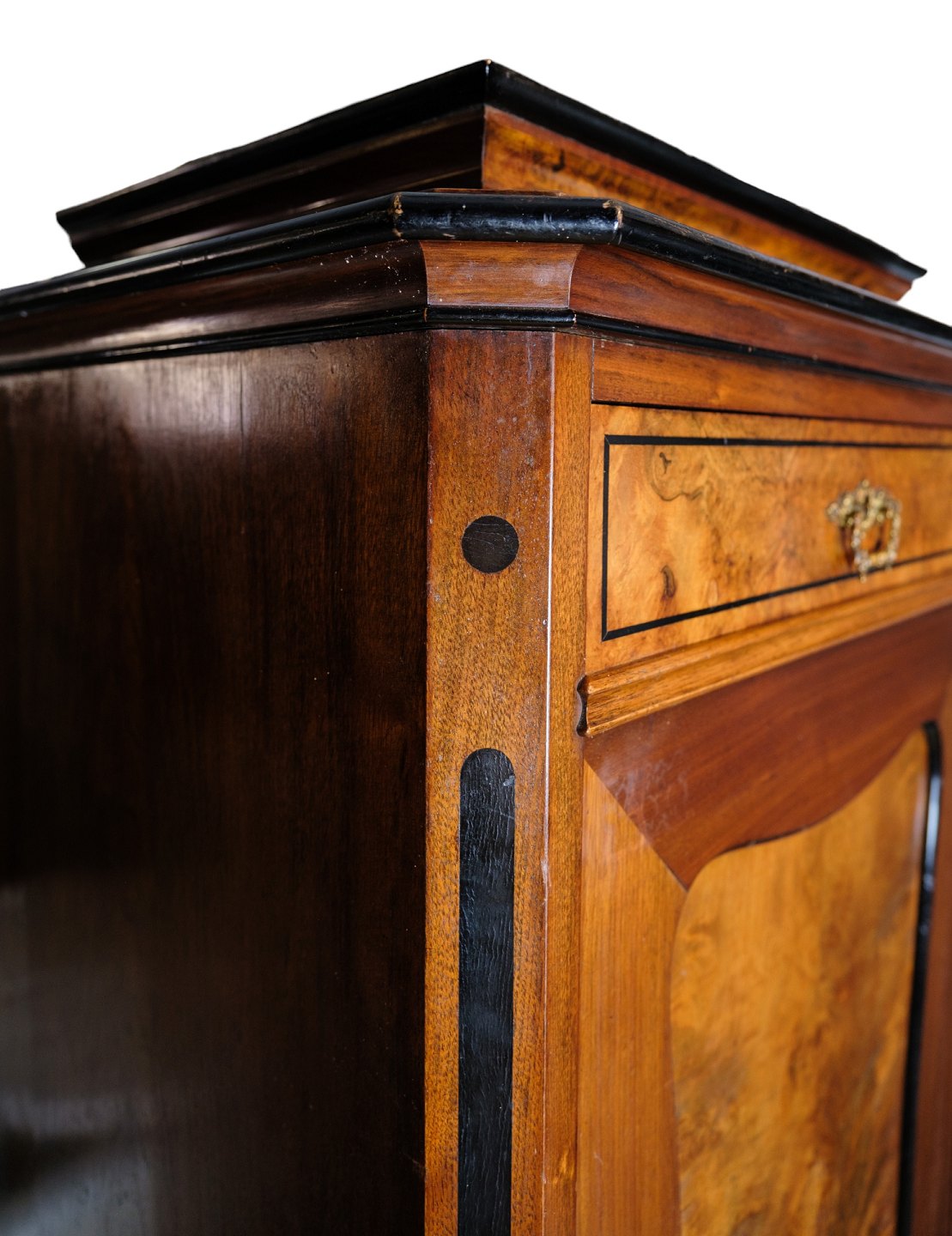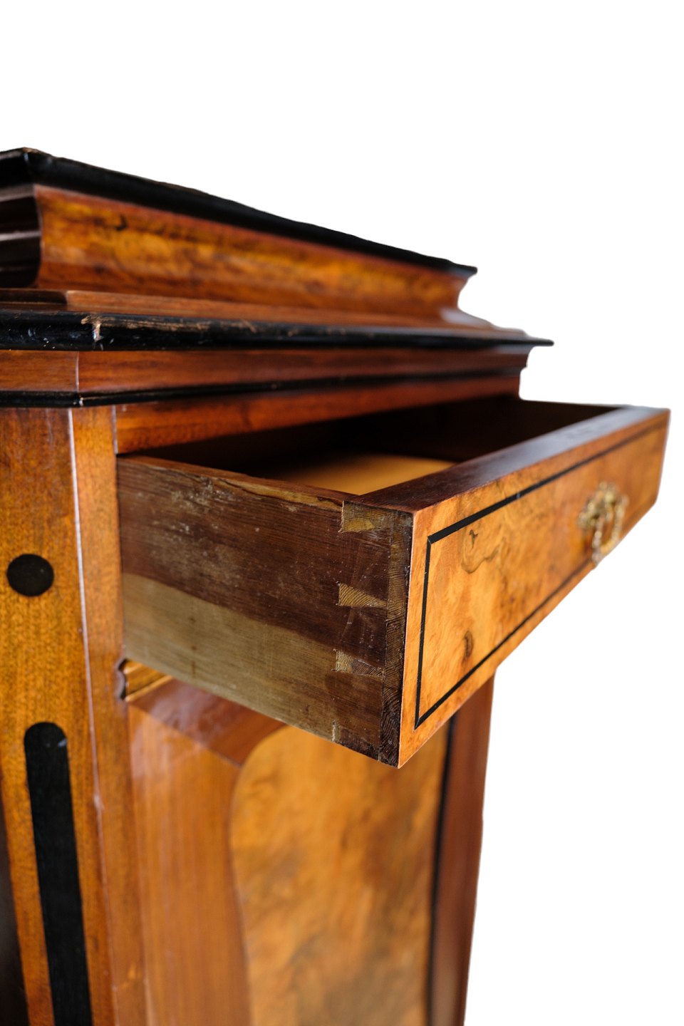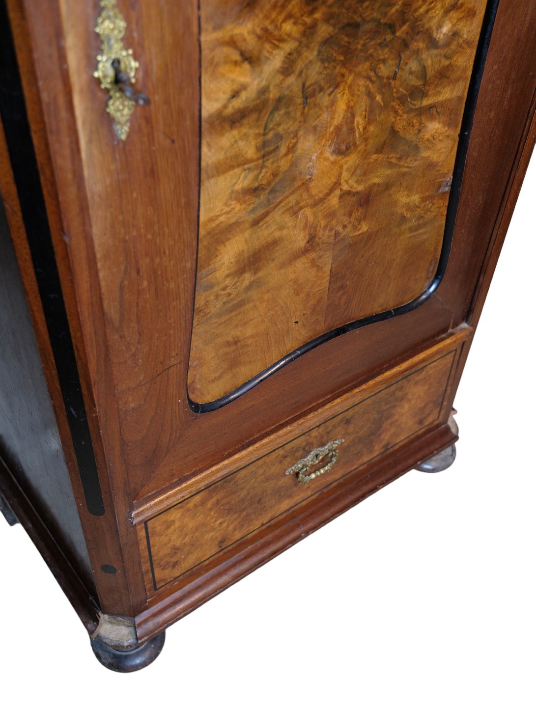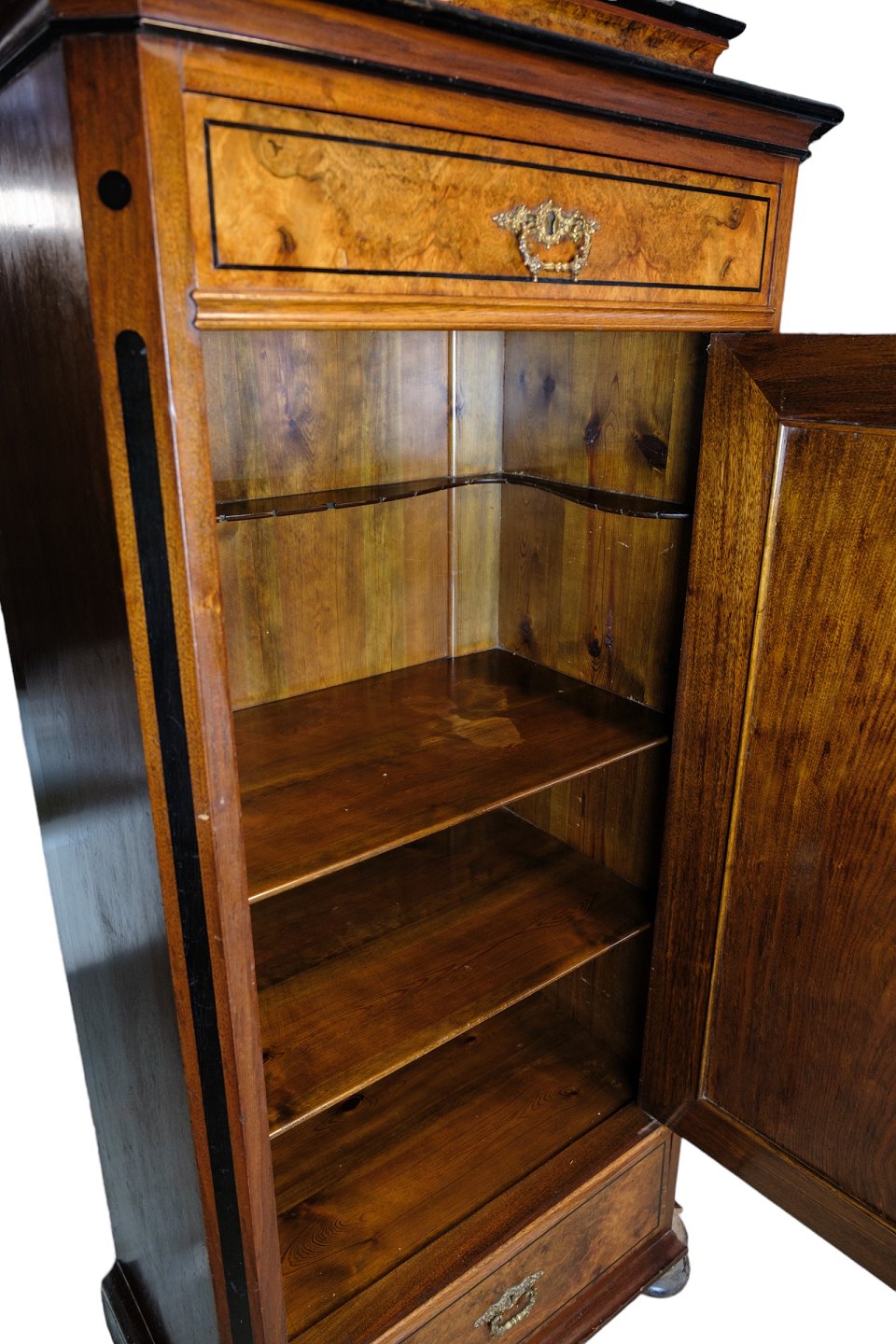 High cabinet of polished walnut, nice antique condition with 2 drawers and a door with shelves from the 1850s