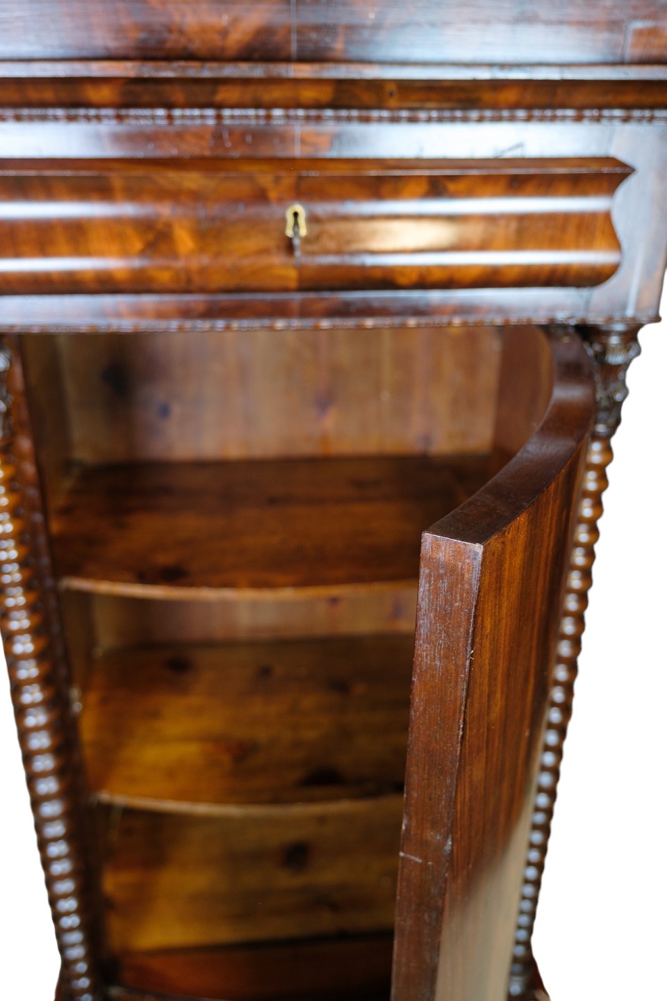SolgtSen empire piedestalskab af poleret mahogni med skuffe i toppen og bunden fra omkring 1840