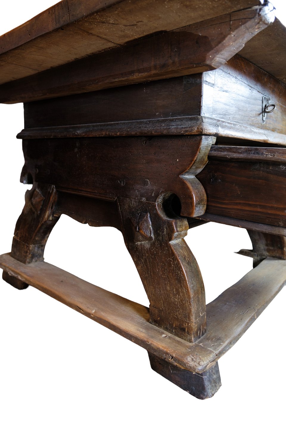 Schweizisk ostebord i egetræ med hemmeligt rum under bordplade skjult af skuffe fra år 1720'erne.