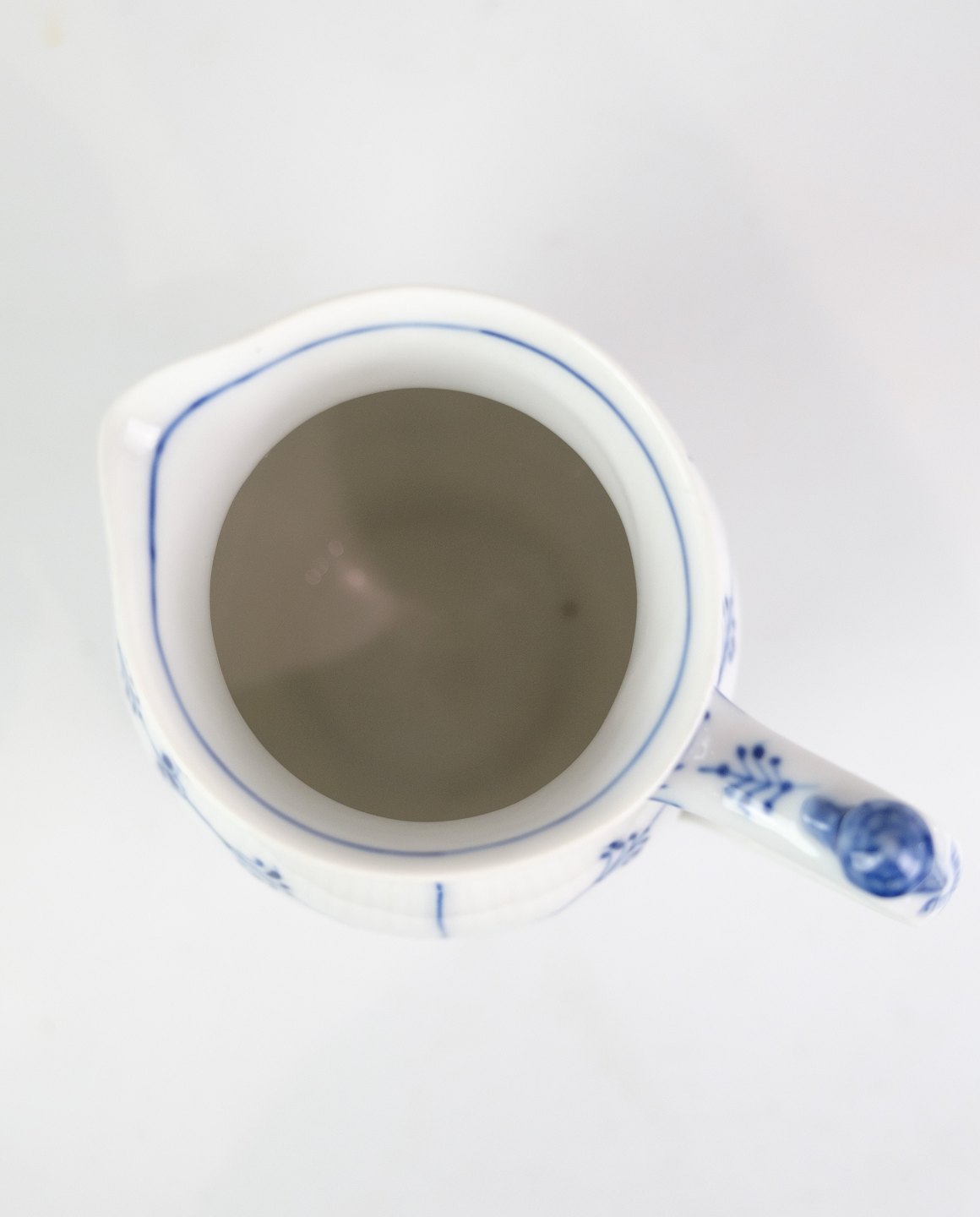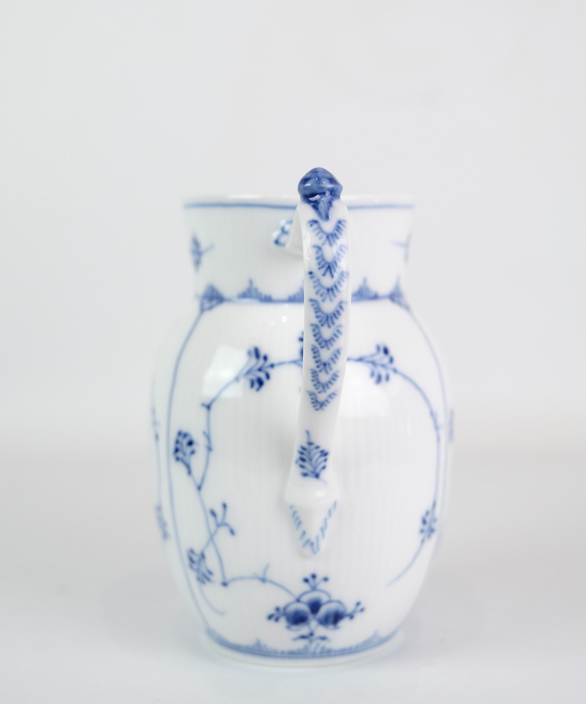 Denne mælkekande er en del af den ikoniske Musselmalet Riflet-serie, som er kendt for sit karakteristiske Riflet-mønster. Mønsteret består af delikate blåmønstre, der pryder kandens overflade og tilføjer en fornemmelse af tradition og dansk kultur til din servering.