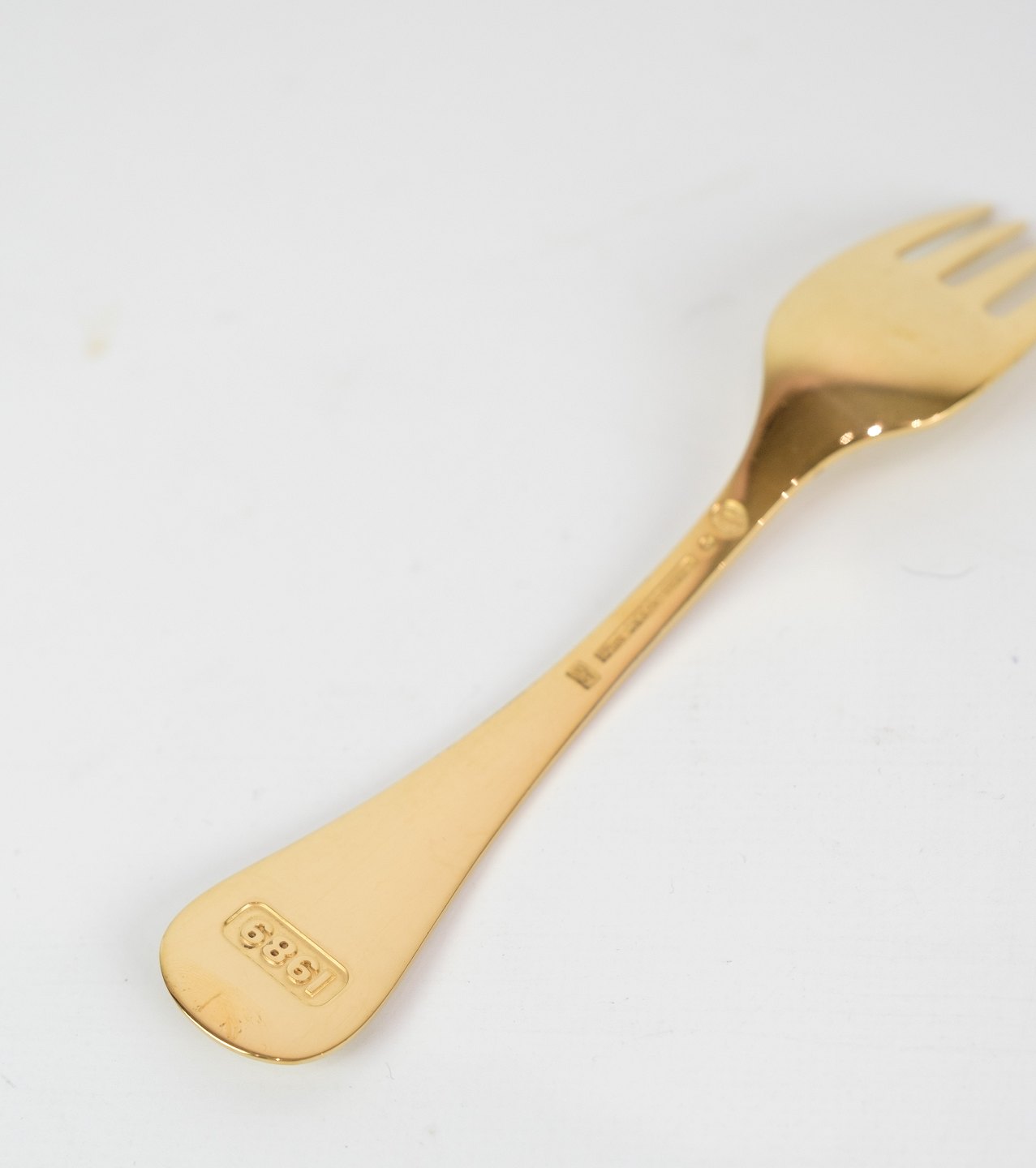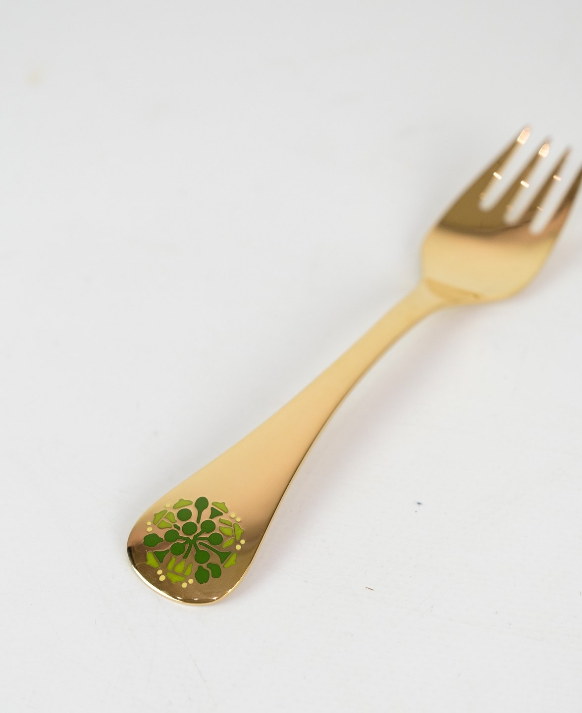 SoldGeorg Jensen Year fork in vintage 1989 of gold-plated sterling silver with green floral motif enamel