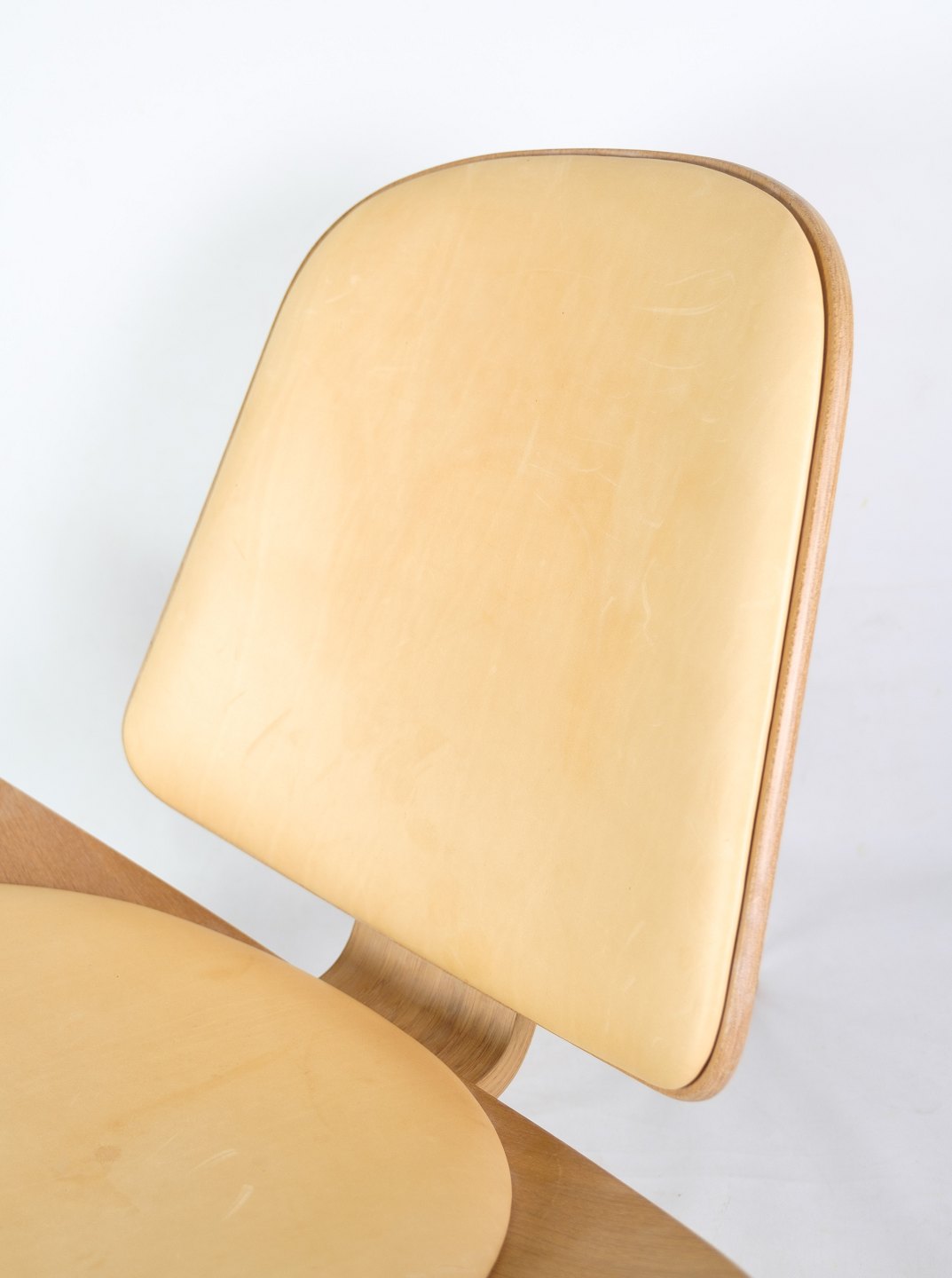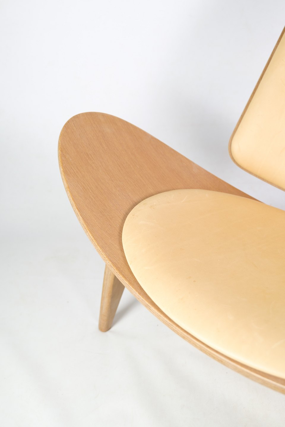 Skalstolen model CH07, designet af Hans J. Wegner udført i egetræ med lyst natur læder med patina af Carl Hansen & Søn med original labels.
