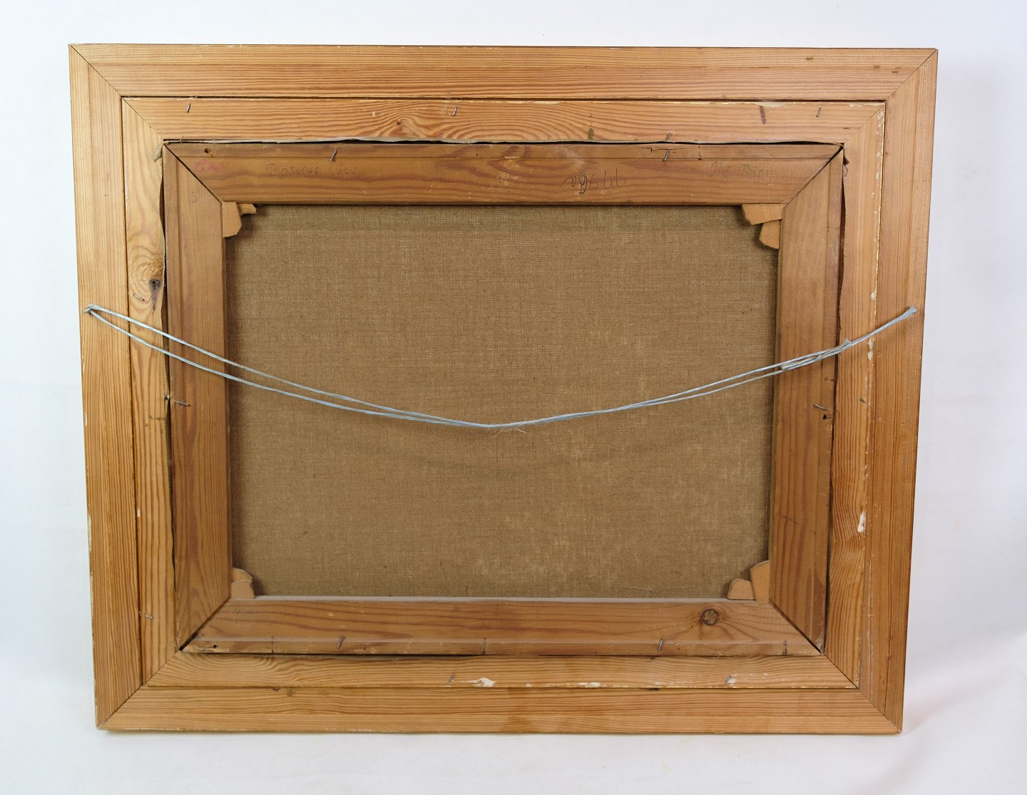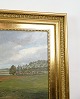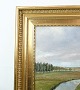 SoldLandscape painting with gold leaf frame painted by the artist Ole Ring (b.1902-d.1972), who lived in the Roskilde, Denmark area. The picture presumably illustrates the landscape around Boserup forest, which is written on the back.