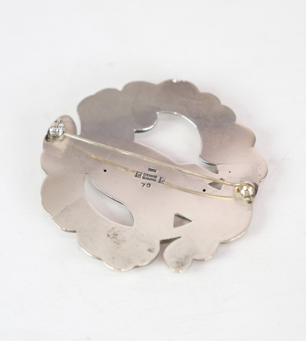 SolgtStor broche af Georg Jensen med velkendt fuglemotiv i original æske i sterling sølv 925 model nr. 70