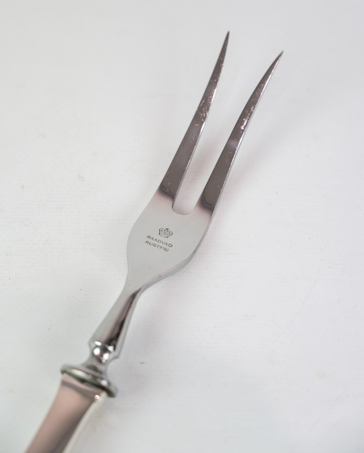 Roasting fork by Hans Hansen heirloom silver no. 8 of partially rusted stainless steel of very good quality.