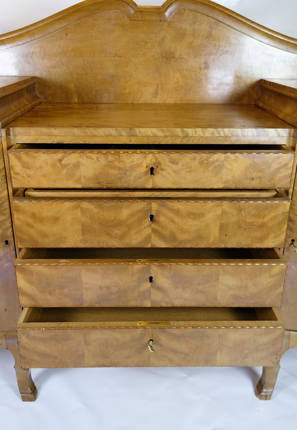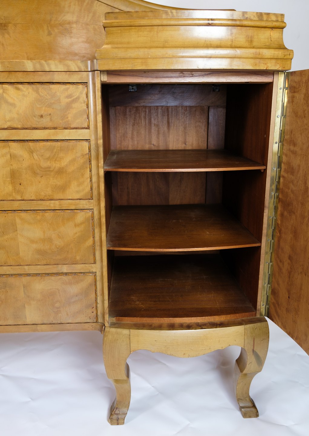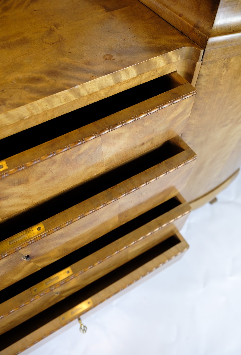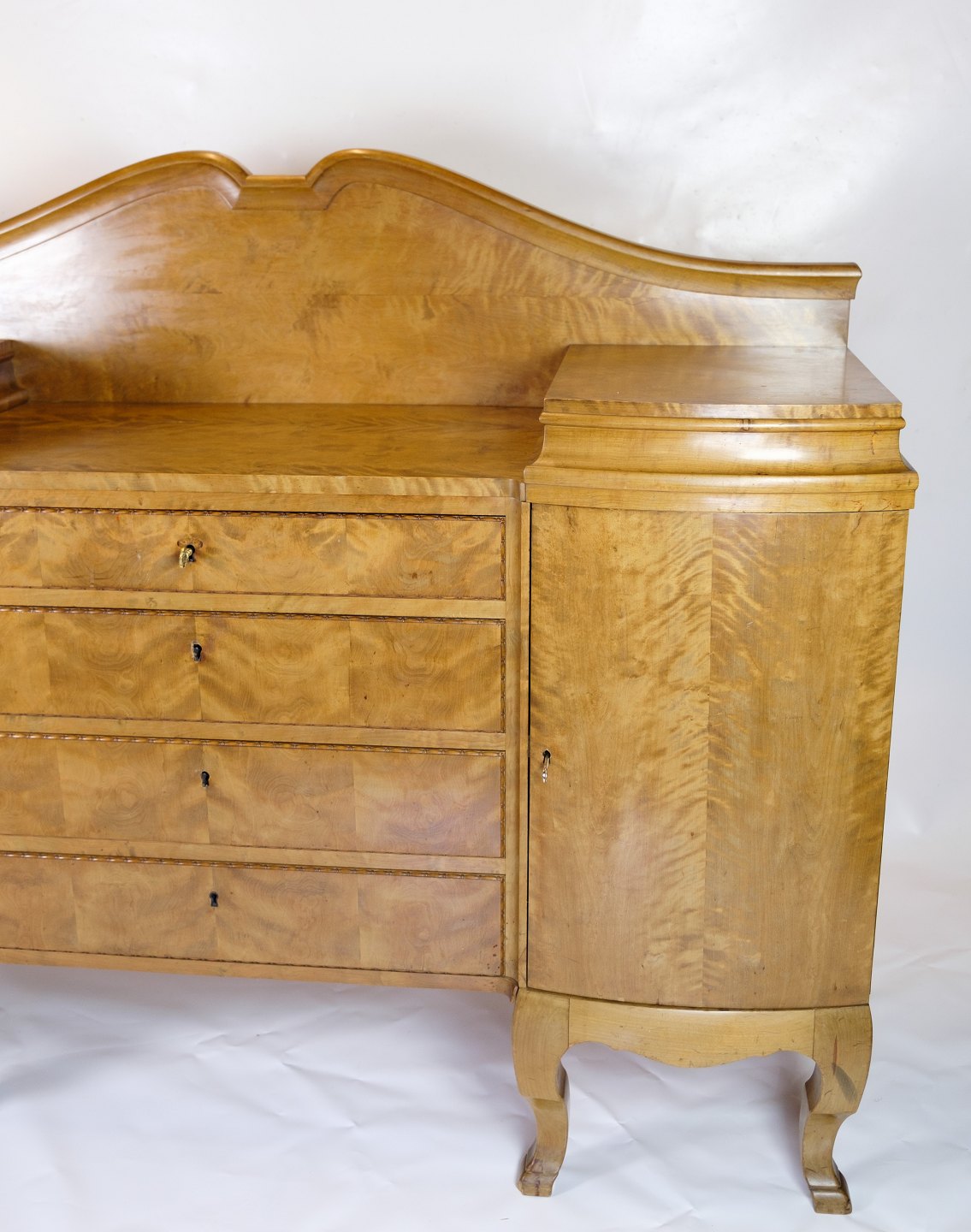 Antique birch sideboard with 4 drawers in the middle and doors on each side from around the 1920s. Original key included