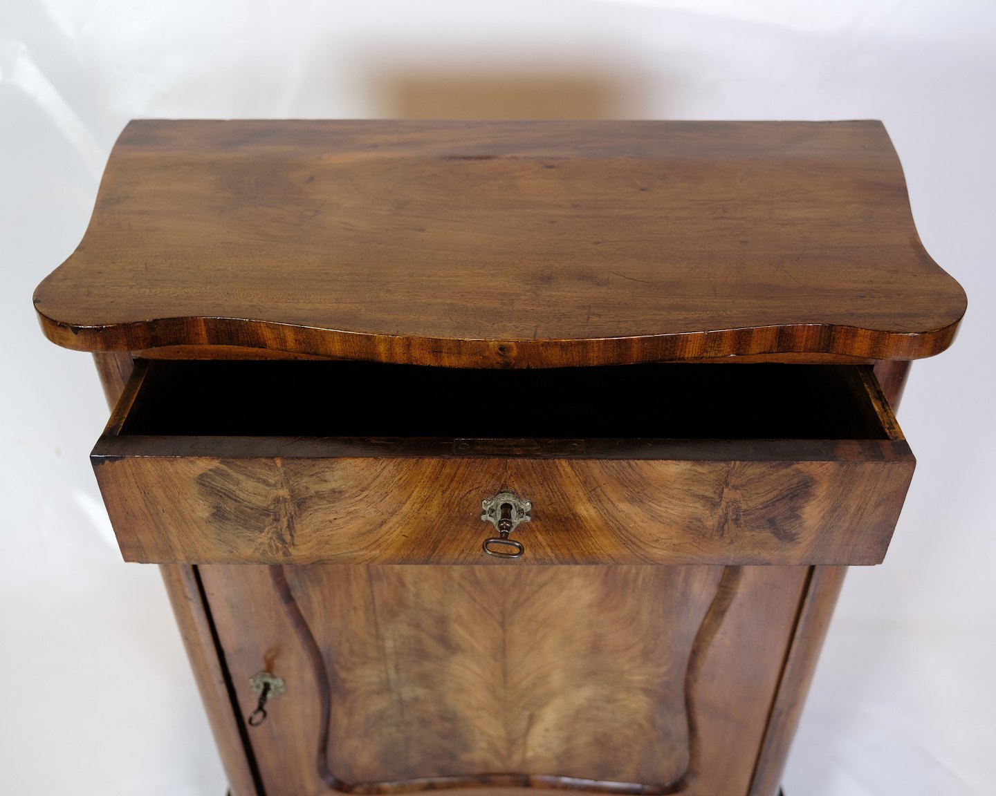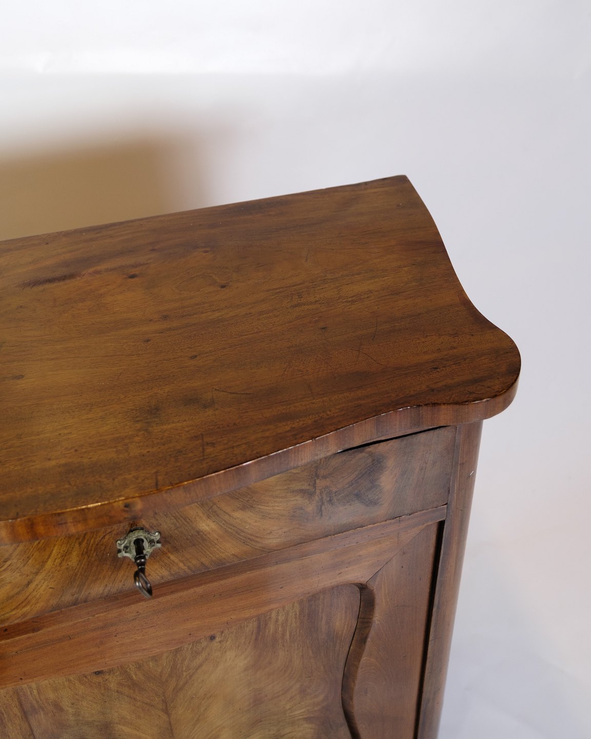 SolgtKonsol Møbel af mahogni med indlagt valnød og med løve fødder og skuffe fremstillet omkring 1880'erne.
