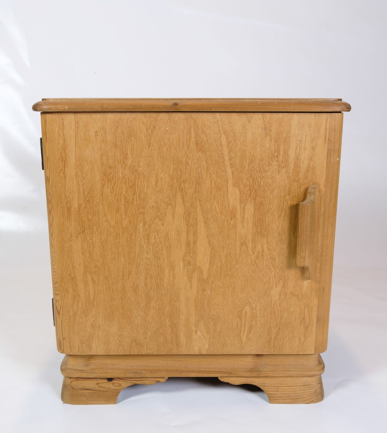 Antique pine nightstand with door and brass hinges from around the 1930s.