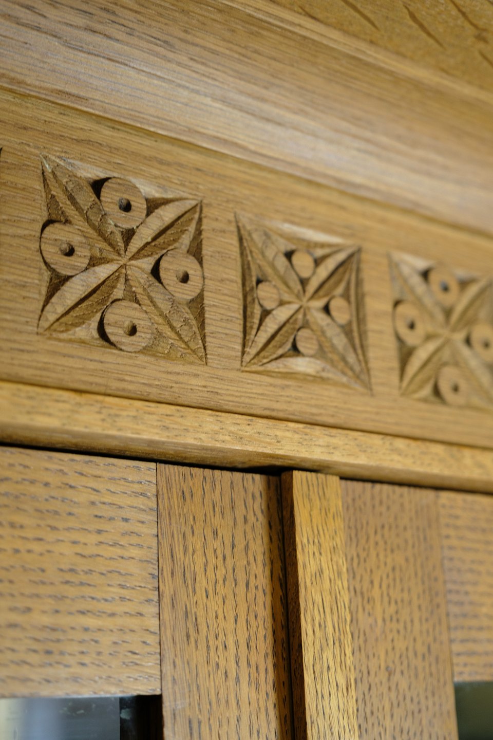 Tall Display Cabinet - Oak - Glass Doors - Original Key - 1880