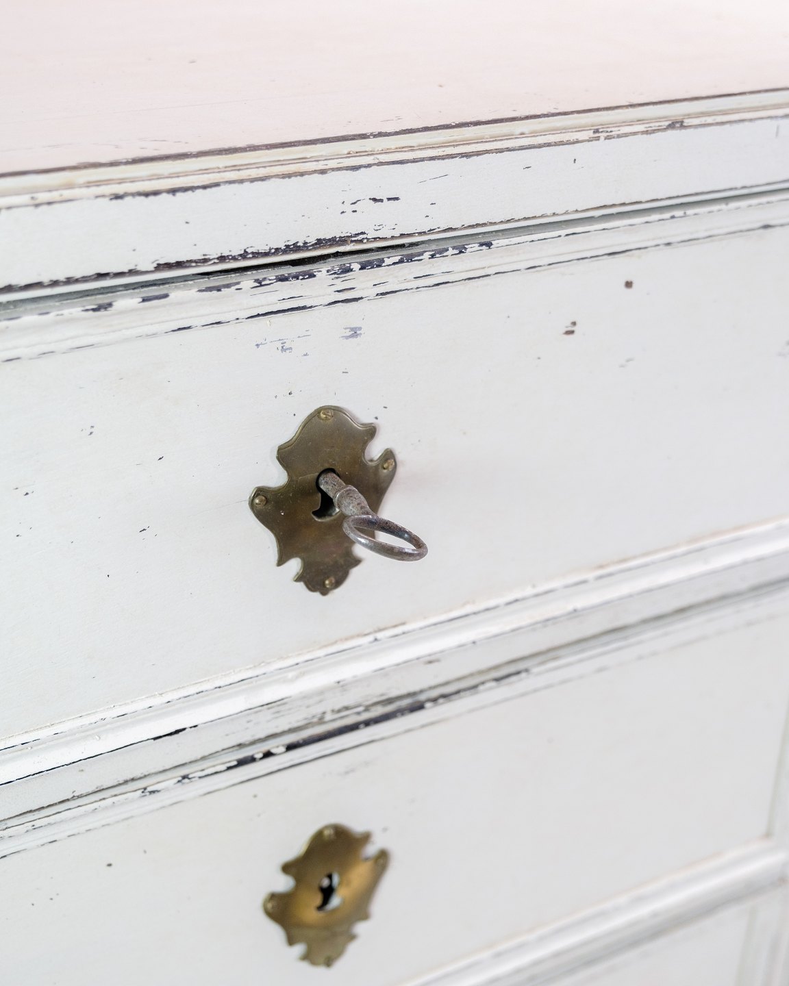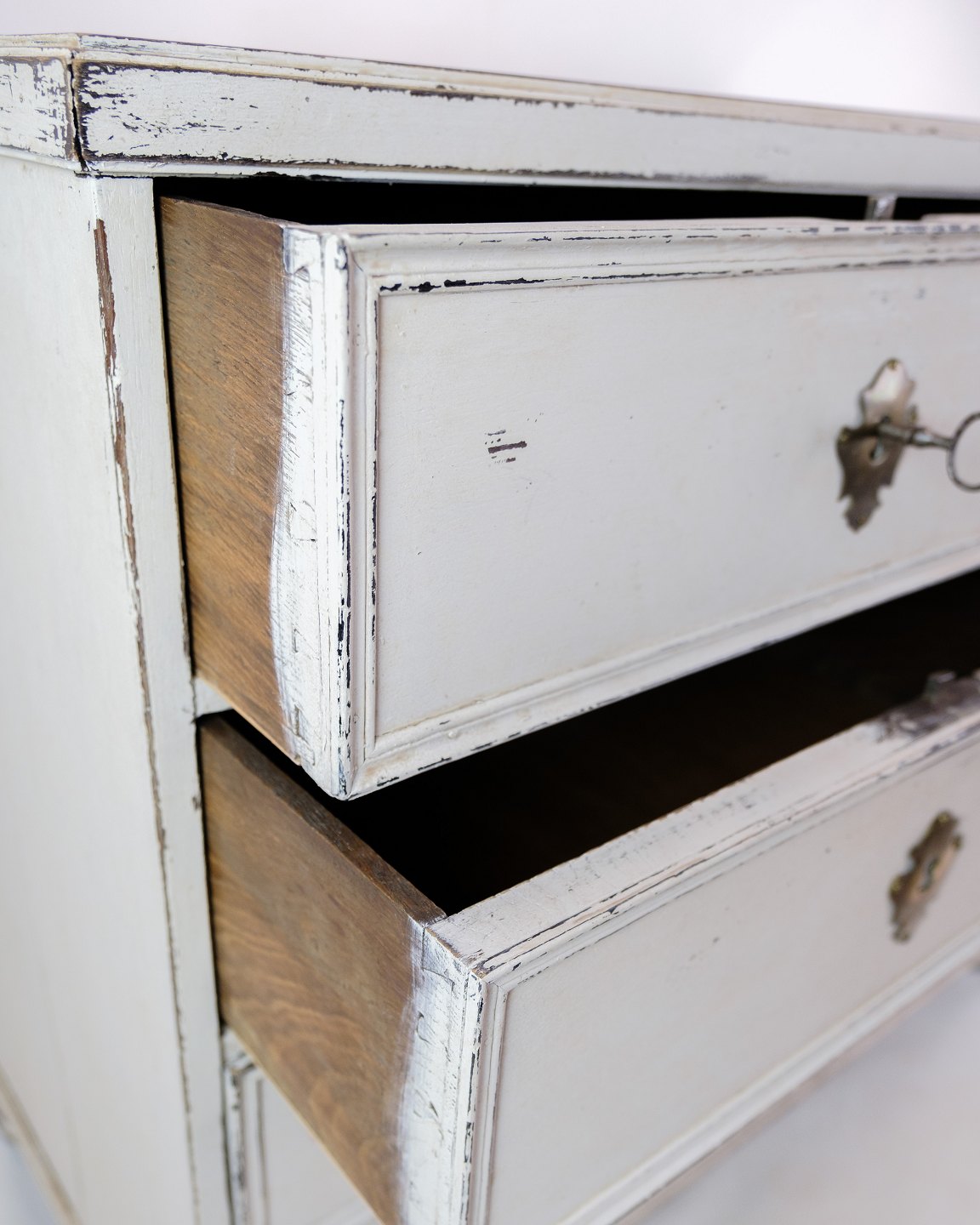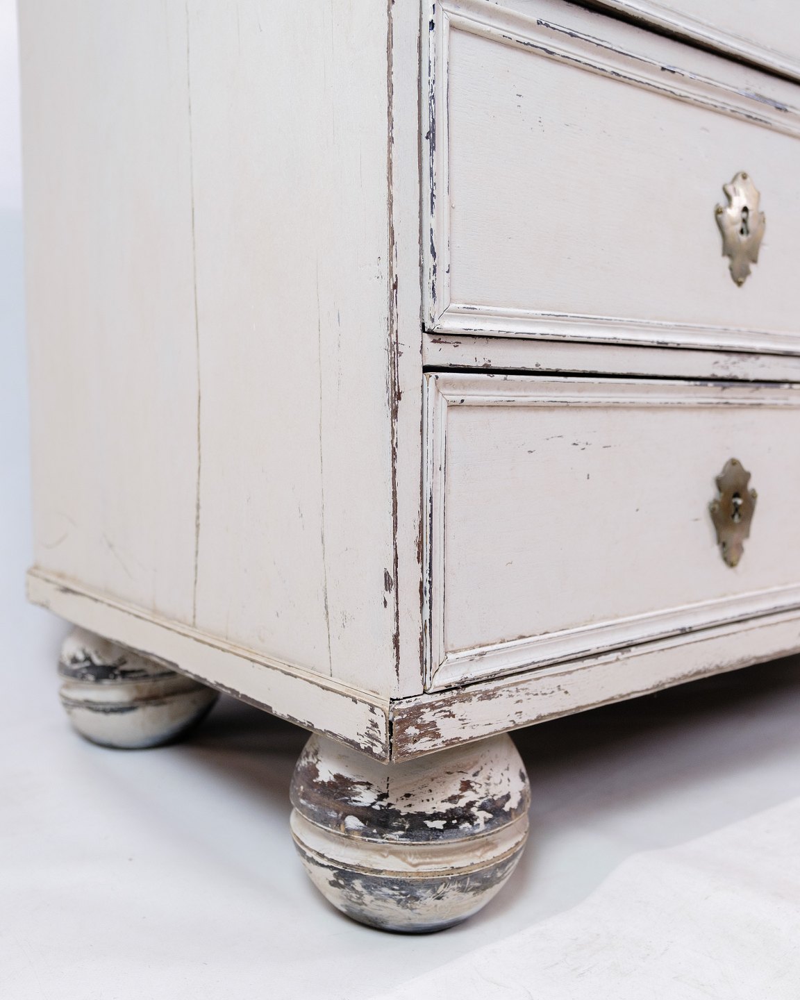 Med en alder på omkring 1850'erne bærer denne kommode på over 150 års historie. Det er ikke blot et møbel, men en tidslig arv, der kan bringe en unik fortælling ind i dit hjem. Investér i dette autentiske stykke historie for at tilføre din indretning en subtil elegance og en forbindelse til fortiden.