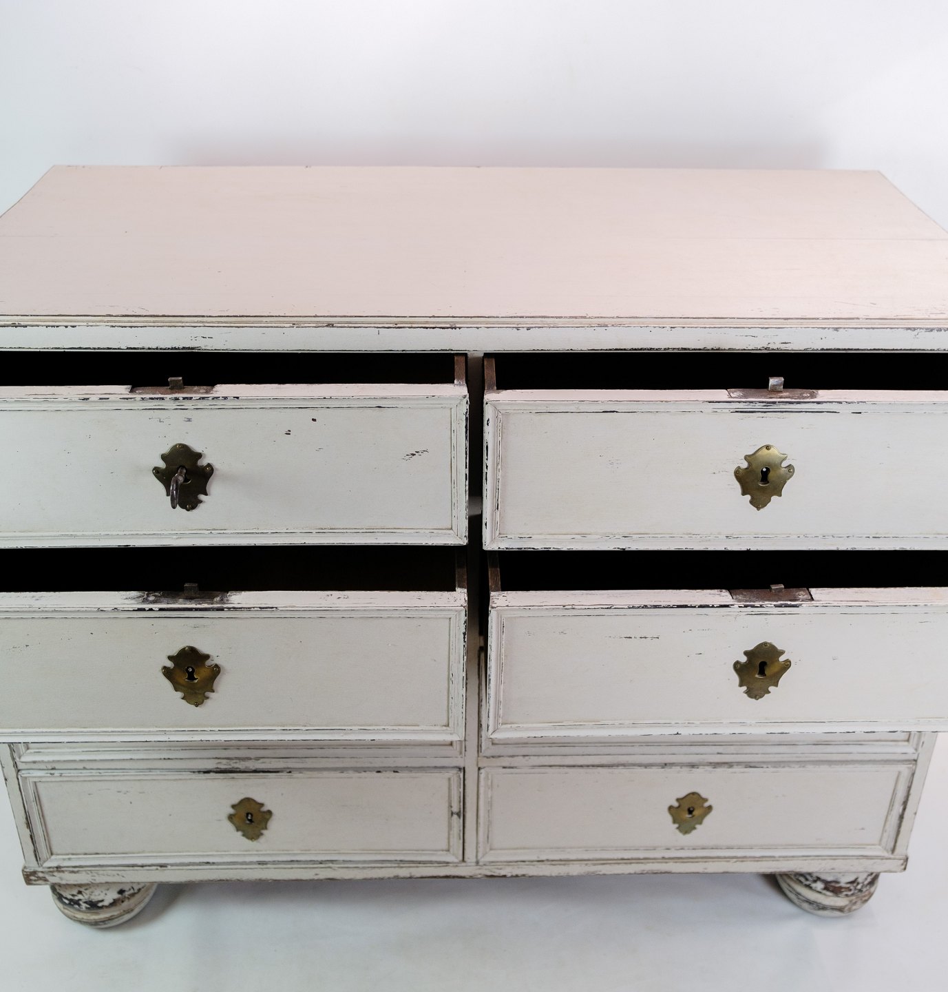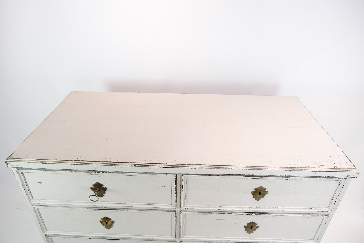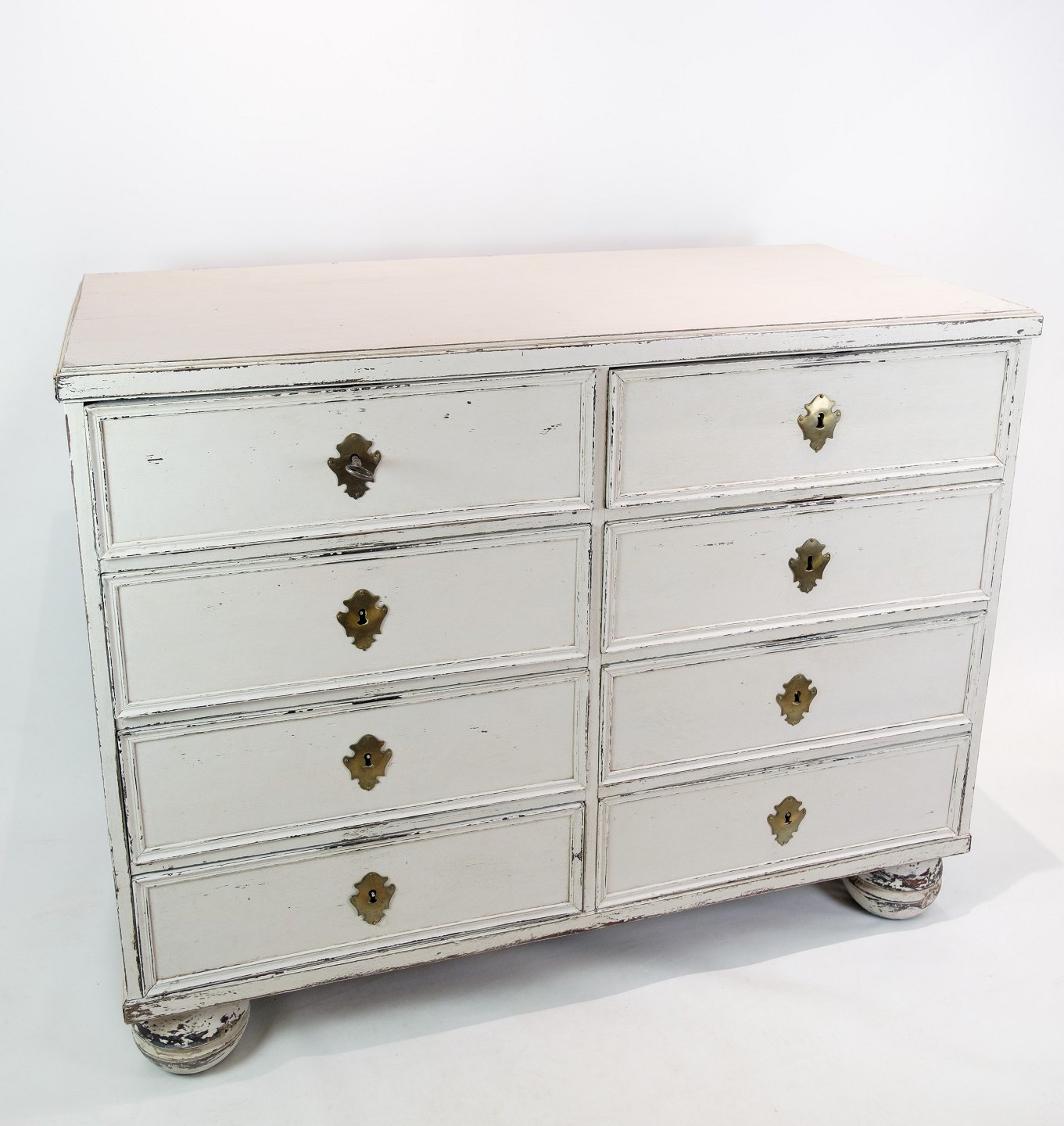 Med en alder på omkring 1850'erne bærer denne kommode på over 150 års historie. Det er ikke blot et møbel, men en tidslig arv, der kan bringe en unik fortælling ind i dit hjem. Investér i dette autentiske stykke historie for at tilføre din indretning en subtil elegance og en forbindelse til fortiden.