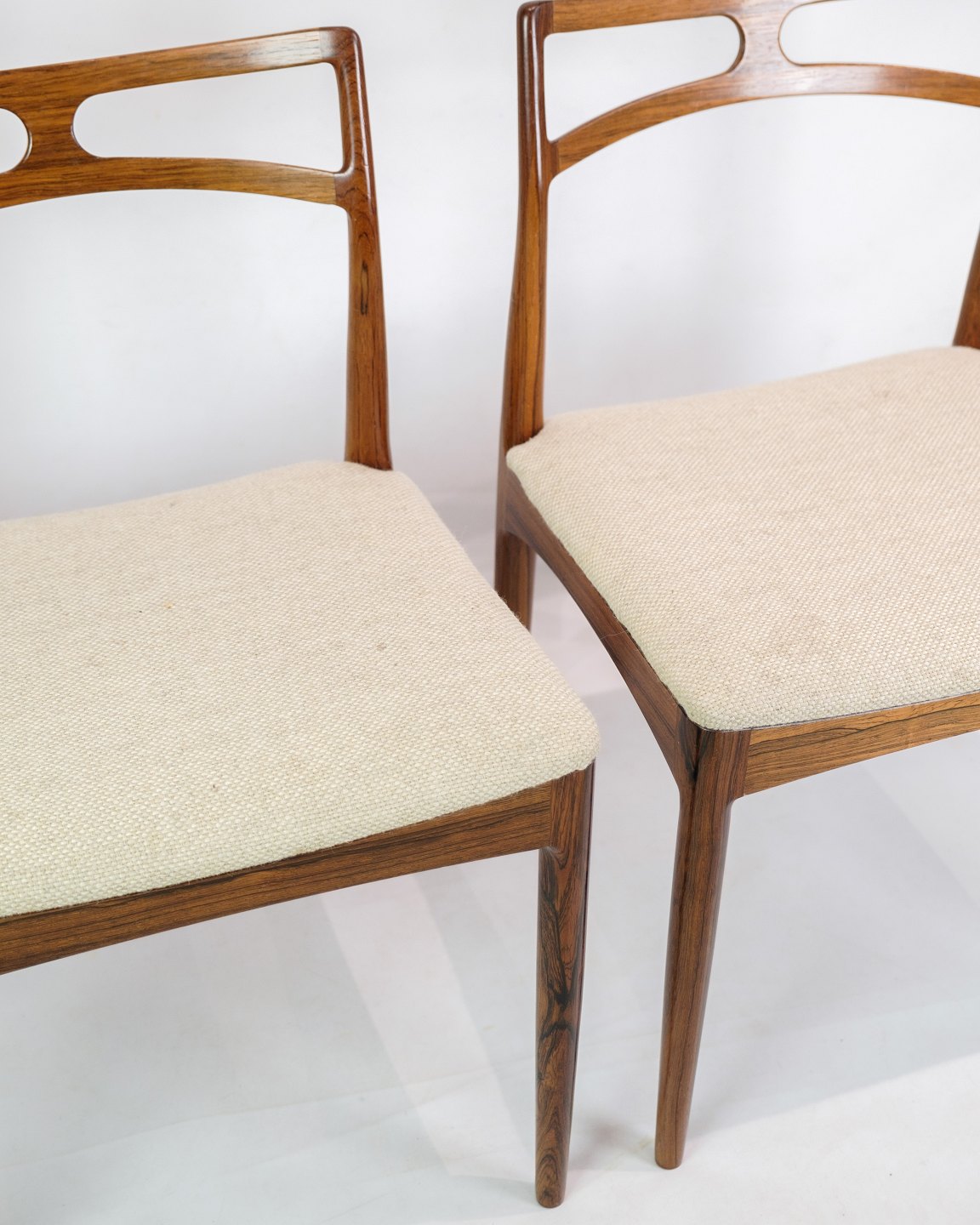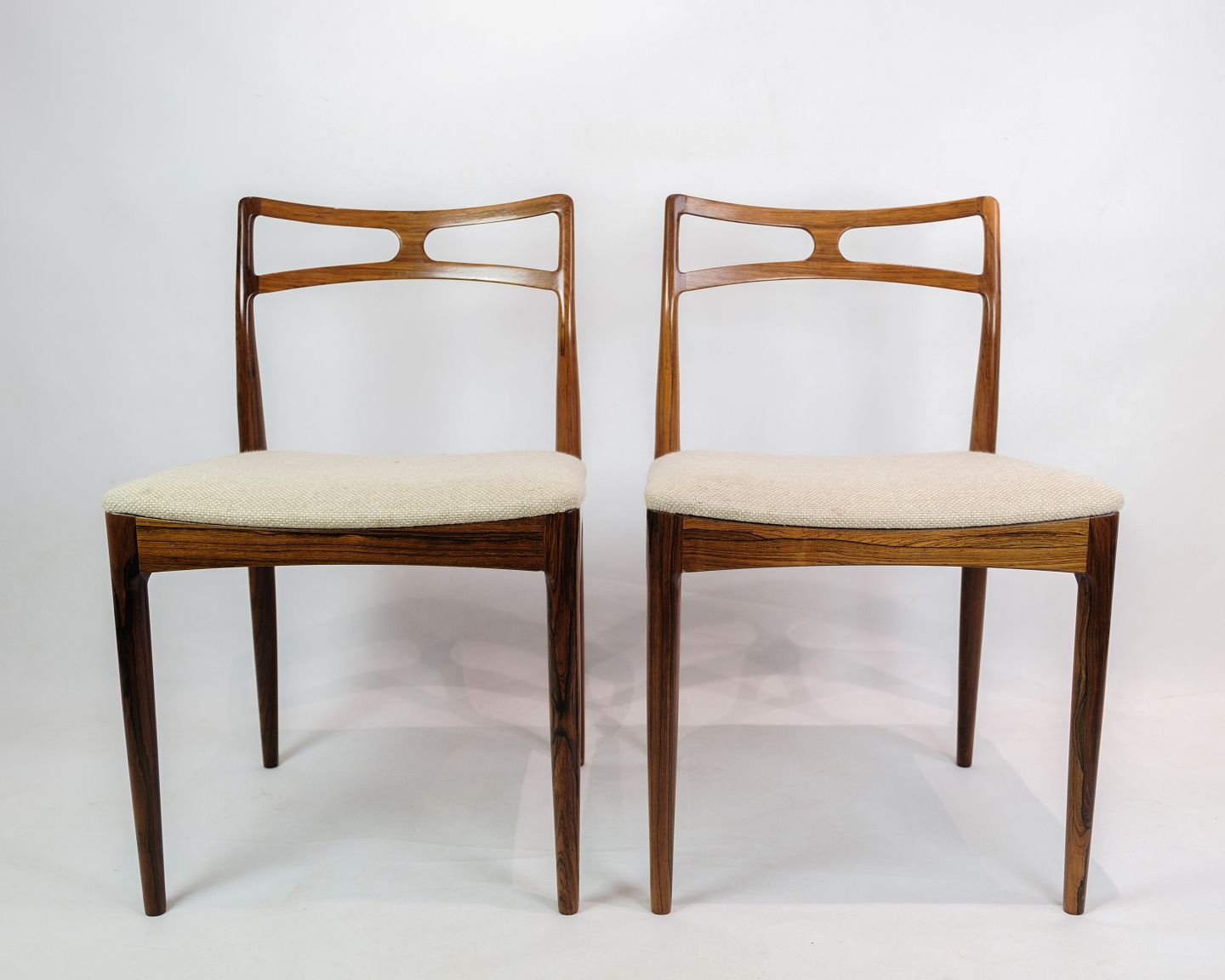 SoldExperience timeless elegance with this set of two chairs, model 94, created by the talented designer Johannes Andersen and manufactured by Chr. Linnebergs Møbelfabrik around the 1960s. The chairs, made of rosewood, radiate a subtle luxury and capture the essence of Danish furniture art from the mid-20th century.