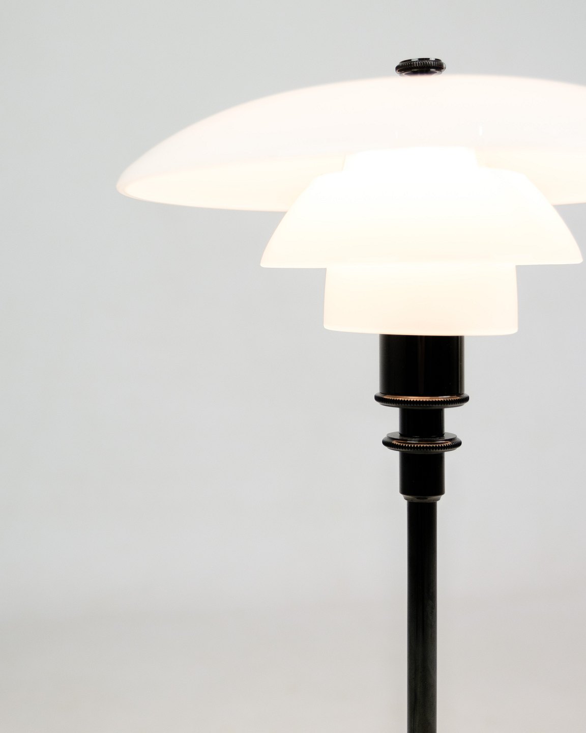 The metallized black finish adds a modern touch to the lamp's classic design. Place this table lamp in the living room, on the work table or as a beautiful decorative element in any room. Every Poul Henningsen lamp is an investment in lighting art and a connection to Danish design history.