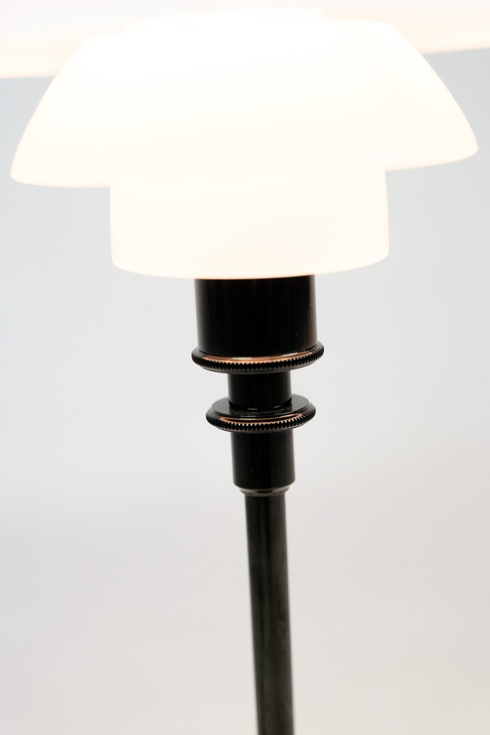 Experience the timeless elegance of Poul Henningsen's iconic design with this table lamp, model 3/2, in black metallized design, manufactured by Louis Poulsen. This lamp is not just a light source; it is a masterpiece of mid-century lighting design and Danish craftsmanship.