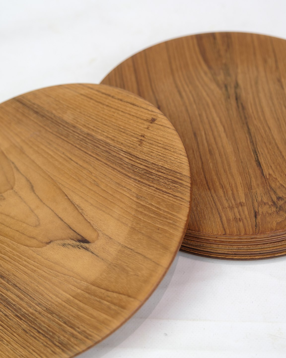 Each plate is shaped by the natural beauty of teak wood, bringing warm tones and a distinct grain structure. This era was characterized by a penchant for simplicity and functionality, and these plates represent the timeless elegance of mid-century design.
